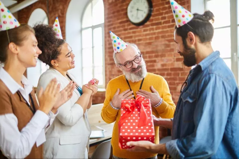 Преподносить презент лучше в рабочее время, но в неформальной обстановке. Перед событием нужно негласно узнать у человека, не прочь ли он принять поздравления.