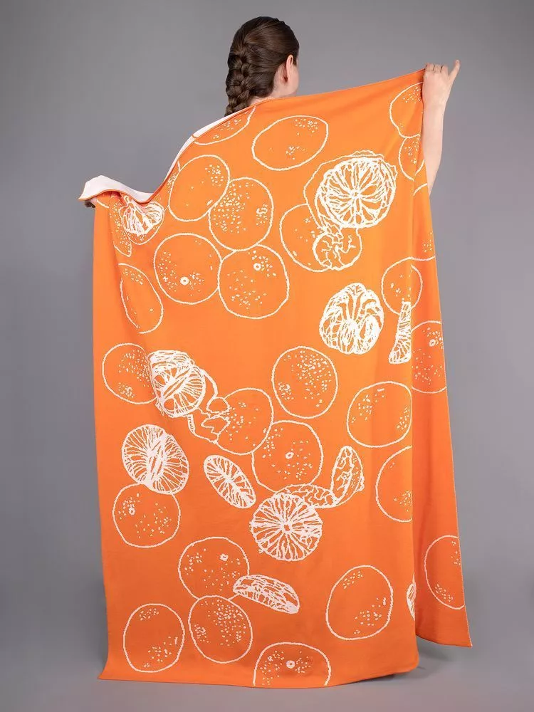 Ярких летних красок в зимние вечера добавит яркий плед Citrion! Его дизайн посвящен легкой предпраздничной суете: одни мандарины разрезаны, другие — очищены от кожуры, а некоторые все еще ждут своего часа. Такой «цикл жизни» простой мандаринки напоминает о маленьких новогодних радостях и мимолетности праздников. А если сил есть мандарины больше нет, можно ими просто укрыться!