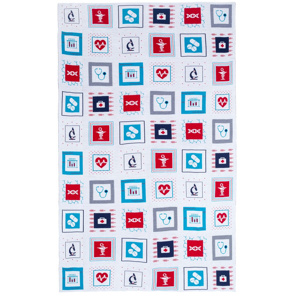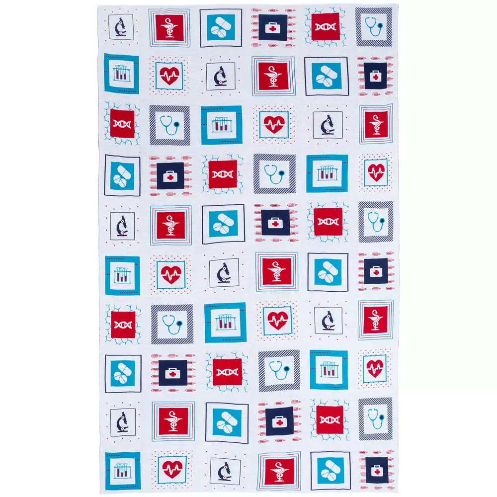 В каждой части общего рисунка, напоминающего лоскутное шитье, в самых теплых красках изображены главные медицинские символы.
