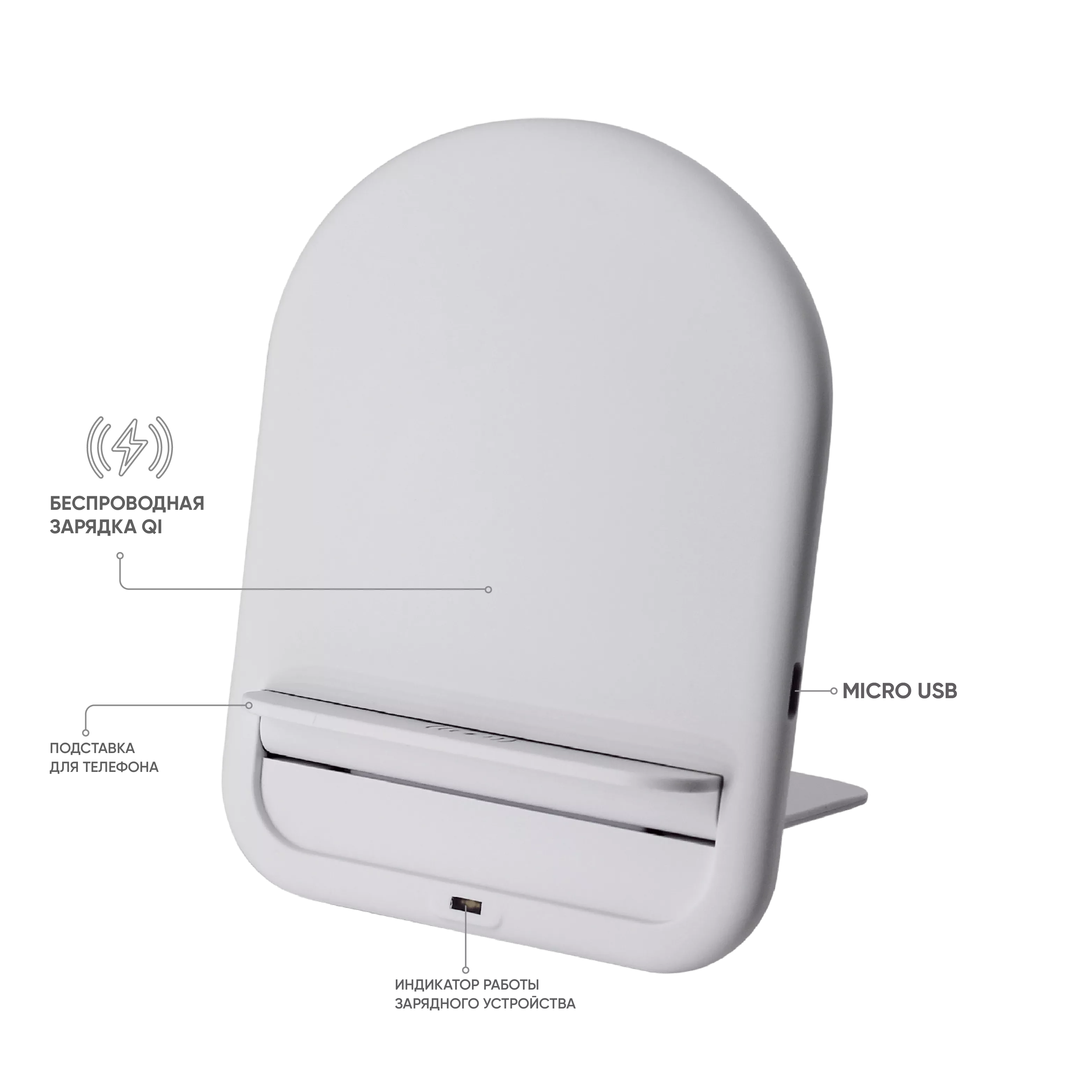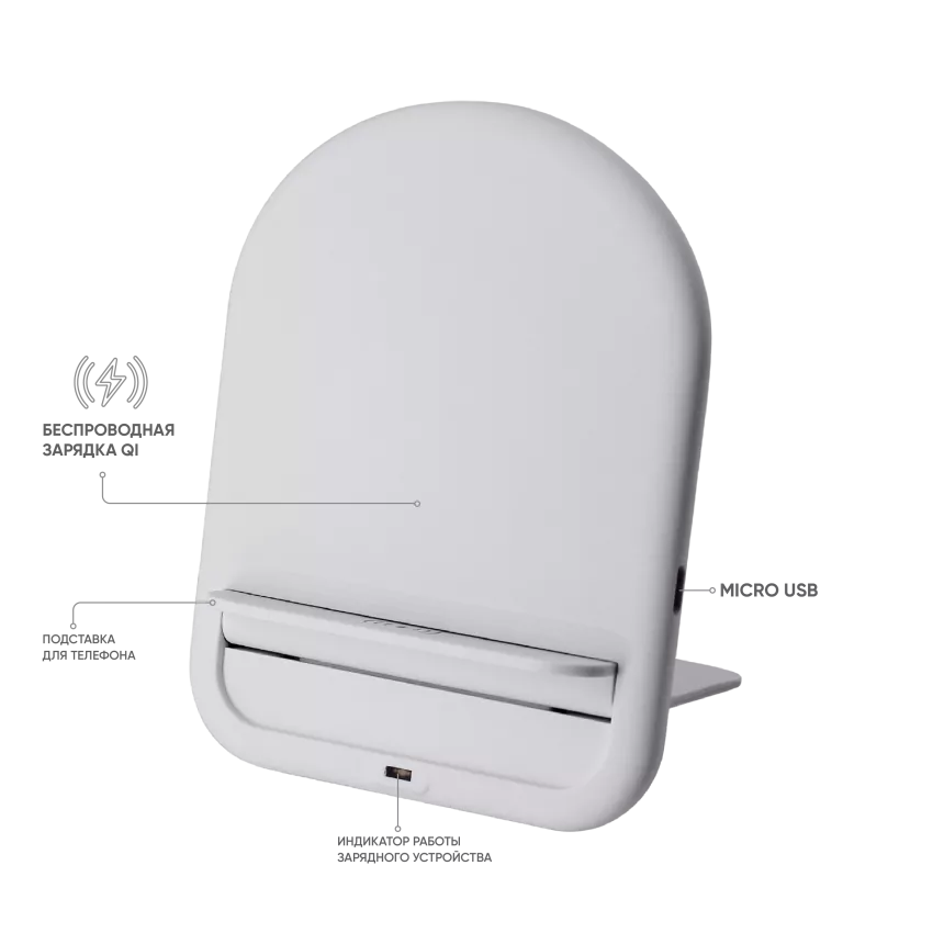 Складное зарядное софт-тач устройство Flatty имеет функцию быстрой беспроводной зарядки и может использоваться в обоих положениях: горизонтальном и как подставка. Зарядное устройство совместимо с любыми мобильными телефонами и устройствами, поддерживающими стандарт Qi.