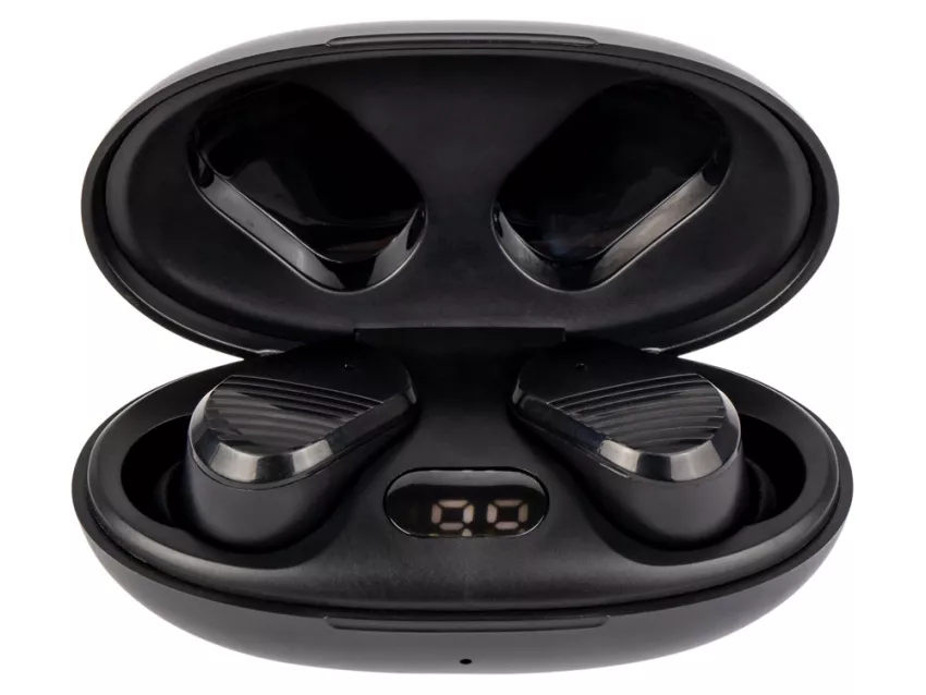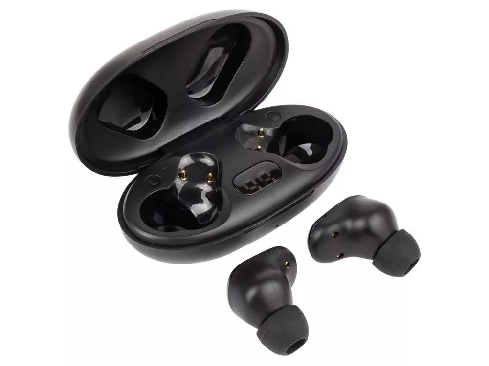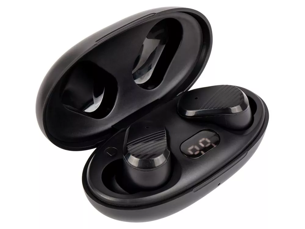 • Широкий функционал гарнитуры дополняет оригинальный зарядный кейс с откидной крышкой и цифровым дисплеем с отображением уровня зарядки в процентах.