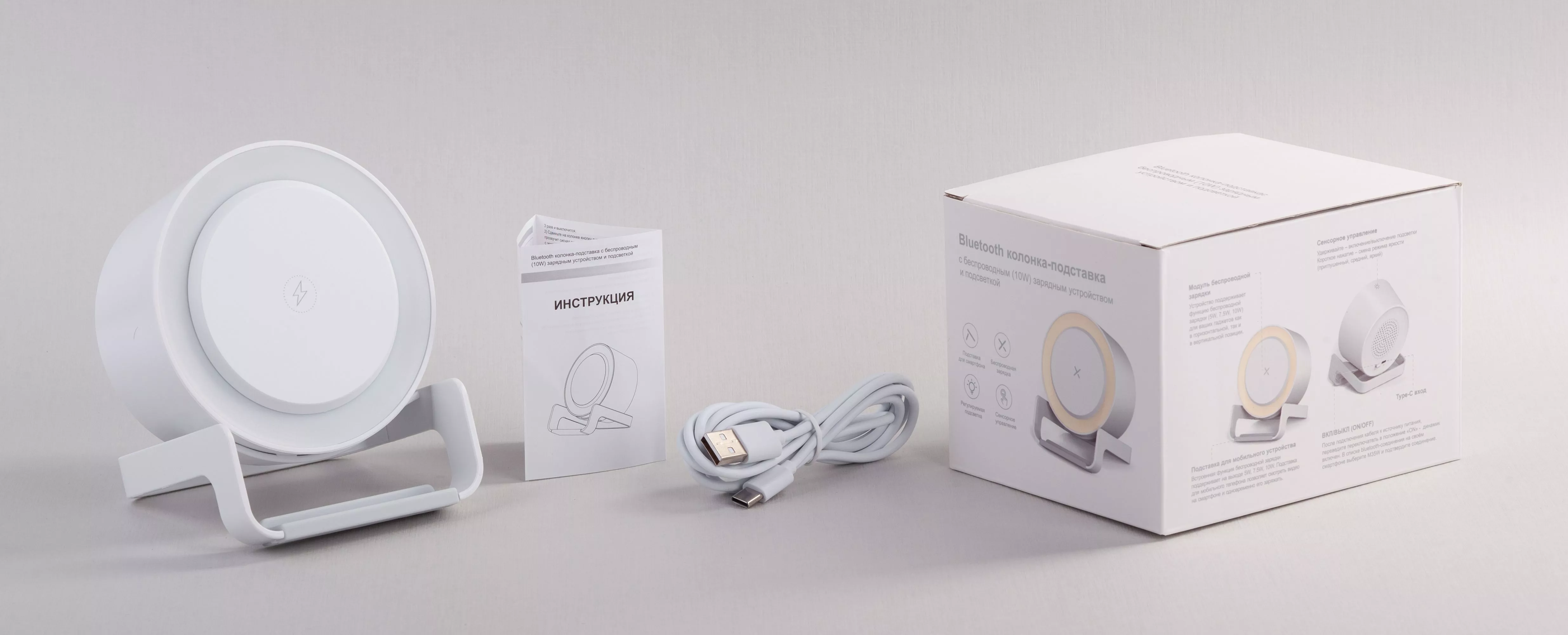 Компактная колонка "Smart Sound" совмещает в себе уникальный дизайн, хорошее качество звука, регулируемую сенсорной кнопкой лампу с 4-мя режимами освещения/яркости и популярную, удобную функцию беспроводного заряда.