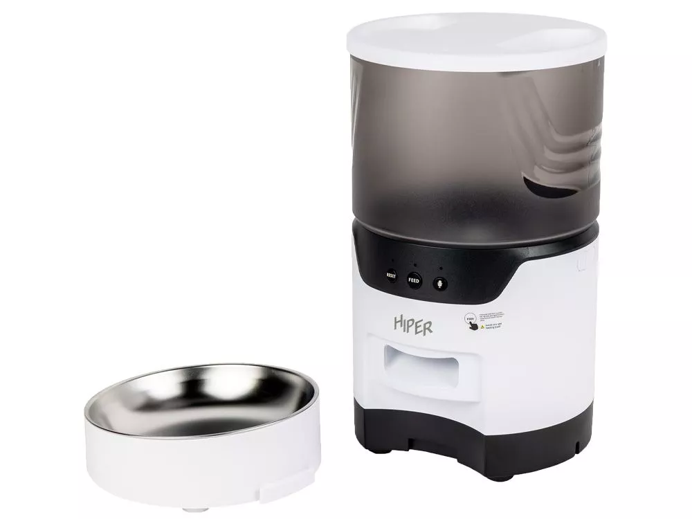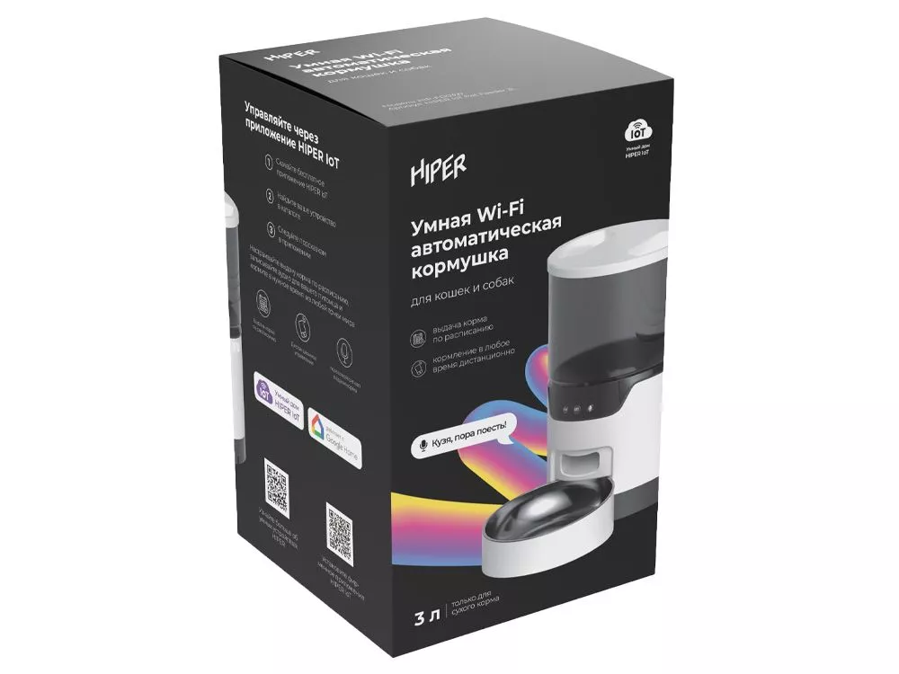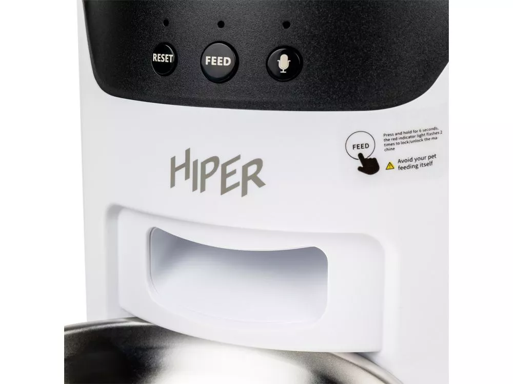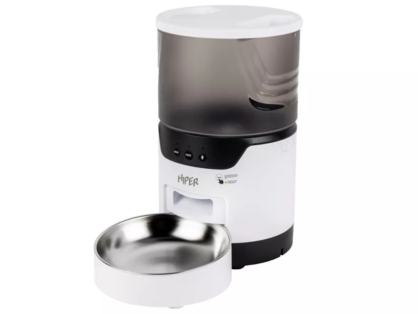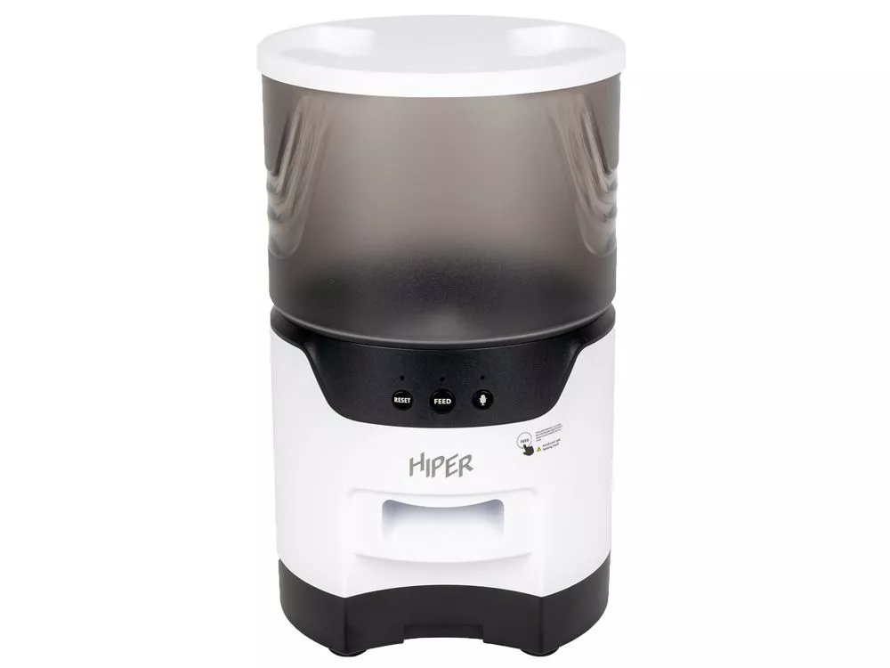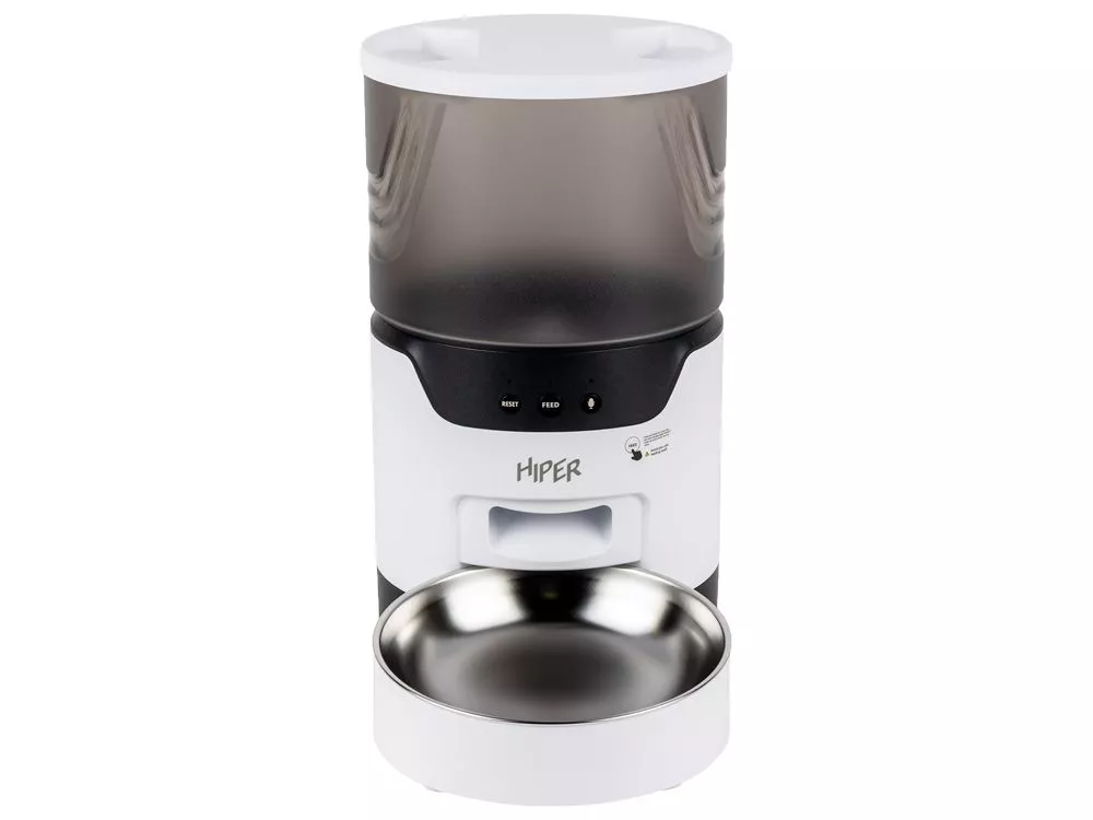 Внутри контейнера имеется специальный фильтр, который защищает сухой корм от влаги. Также конструкция предусматривает встроенный вращающийся механизм, который обеспечивает равномерную подачу корма через широкое отверстие. Вы можете отрегулировать размер порции от 10 до 200 грамм. Расписание кормления можно настроить в бесплатном приложении HIPER IoT для всех смартфонов на Android и iOS, там же вы можете покормить питомца дистанционно в любой момент, где бы вы ни были.