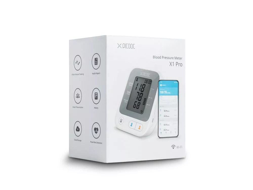 Прибор работает по принципу большинства электронных тонометров: показания снимаются при помощи универсальной манжеты с обхватом 22–42 см. Устройство позволяет сохранять историю измерений 2 пользователей и синхронизируется с их аккаунтами Picooc.