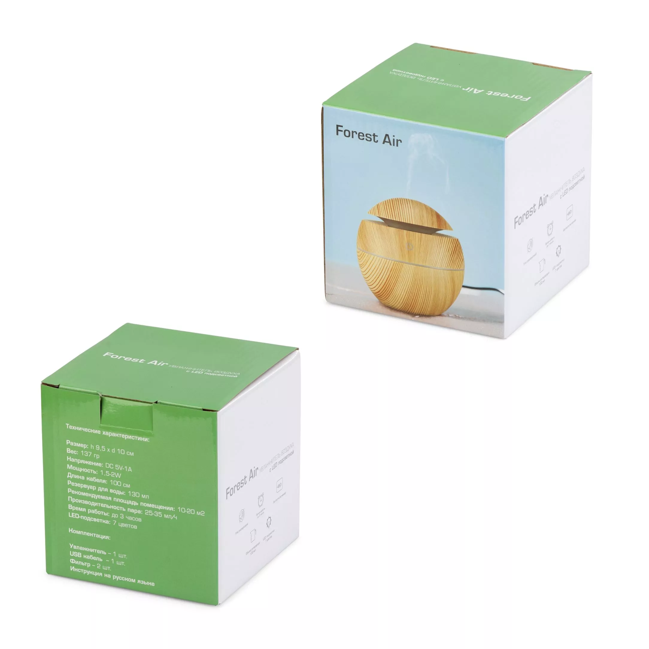Компактный увлажнитель Forest air изготовлен из качественного пластика с имитацией дерева. Лаконичный экодизайн подчёркивает встроенная подсветка. Включение и сам процесс работы настольного увлажнителя максимально просто регулируется сенсорной кнопкой.