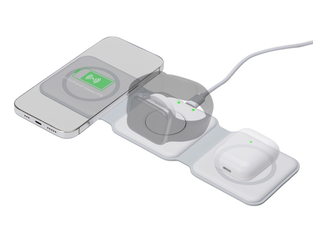 Совместимость с технологией MagSafe обеспечивает надежное магнитное прикрепление и оптимальную передачу энергии для устройств Apple, таких как iPhone, AirPods и Apple Watch