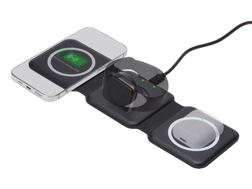 Совместимость с технологией MagSafe обеспечивает надежное магнитное прикрепление и оптимальную передачу энергии для устройств Apple, таких как iPhone, AirPods и Apple Watch