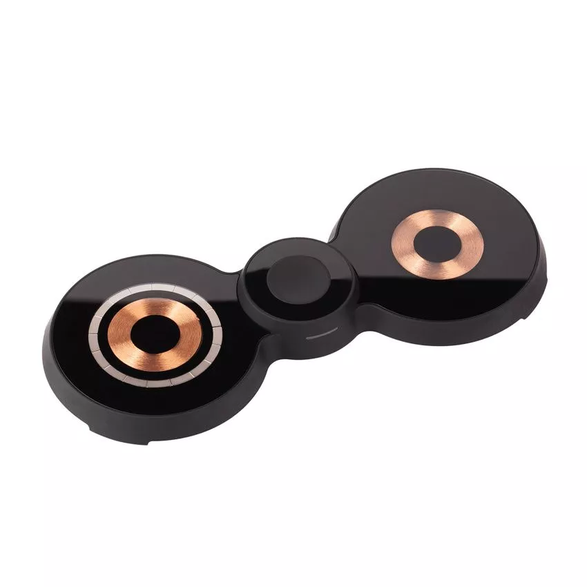 Благодаря прозрачному корпусу видны две зарядные оранжевые катушки повышенной мощности 15W и серебристое магнитное кольцо MagSafe, позволяющее удобно размещать iPhone 12 серии и выше. В центре станции - зарядный блок для смарт-часов.