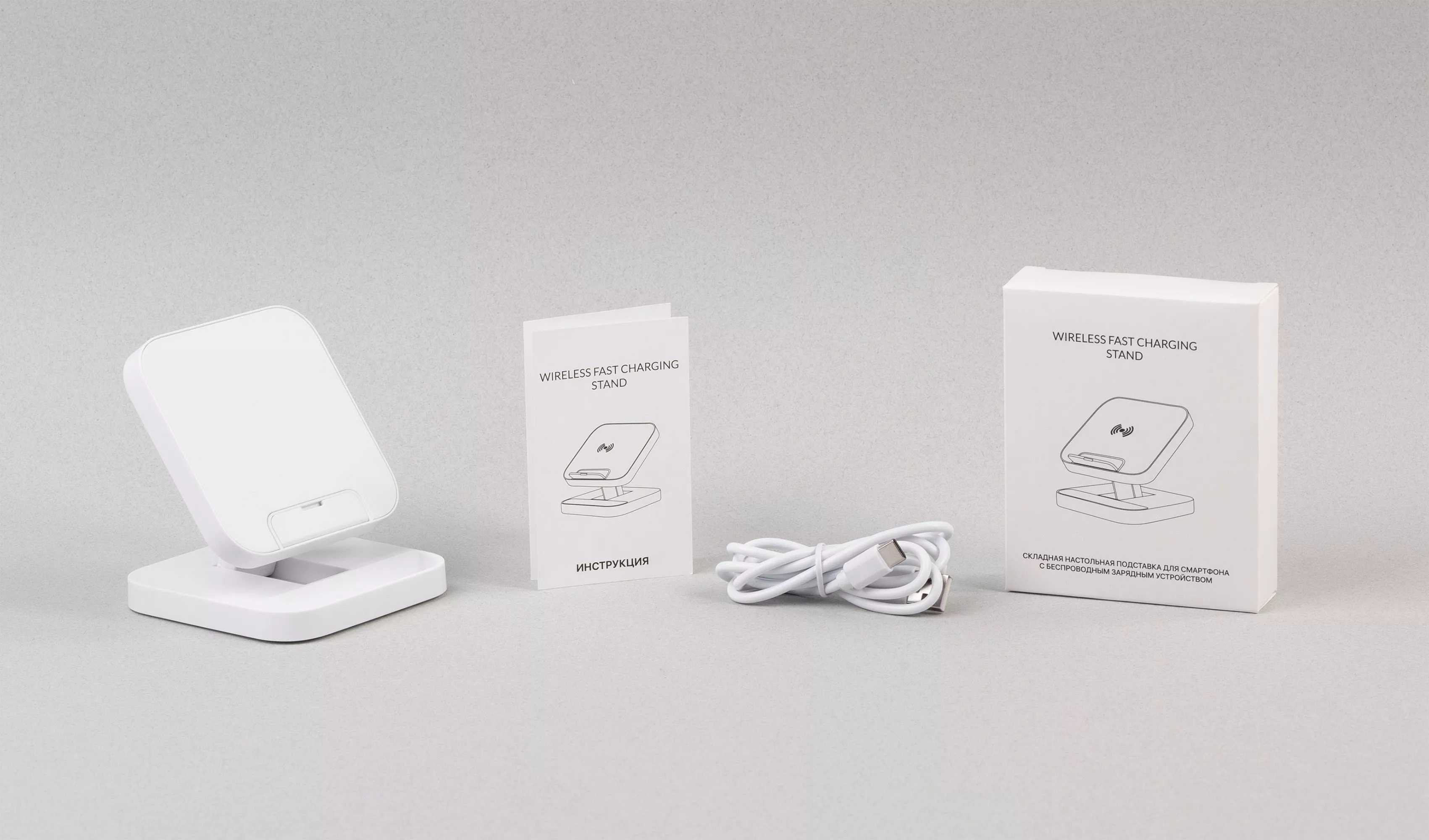 Складная конструкция обеспечивает не только удобную транспортировку, но и позволяет выполнить нанесение логотипов/информации методами тампо- или УФ-печати на всей поверхности зарядного блока с подставкой.