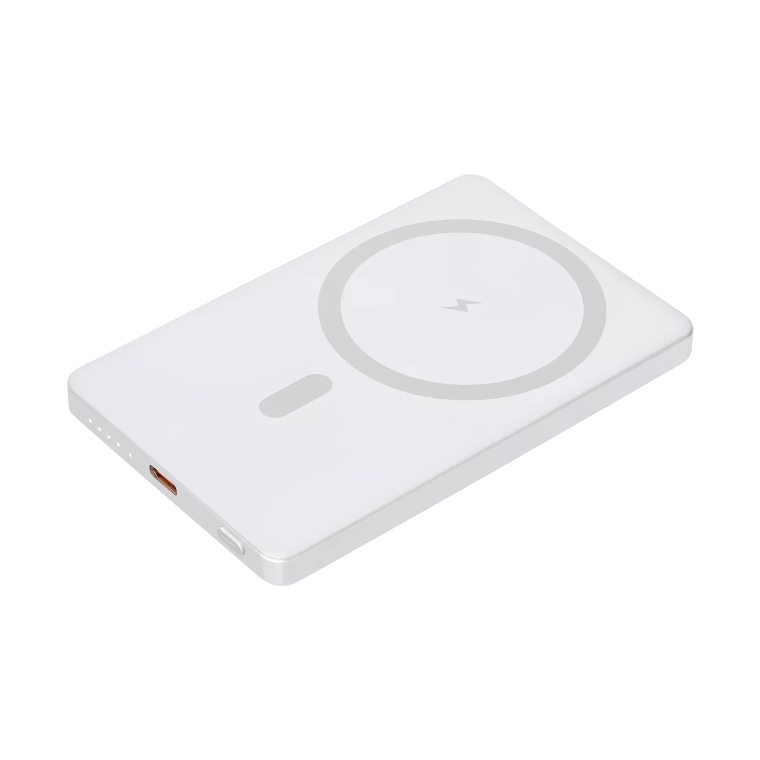 Благодаря усиленному магниту MagSafe, ваш iPhone будет надёжно закреплён на аккумуляторе, обеспечивая стабильное и эффективное пополнение энергии. Прочный алюминиевый корпус не только придает устройству премиальный вид, но и защищает его от повреждений. Техническая информация размещена на боковой грани.
