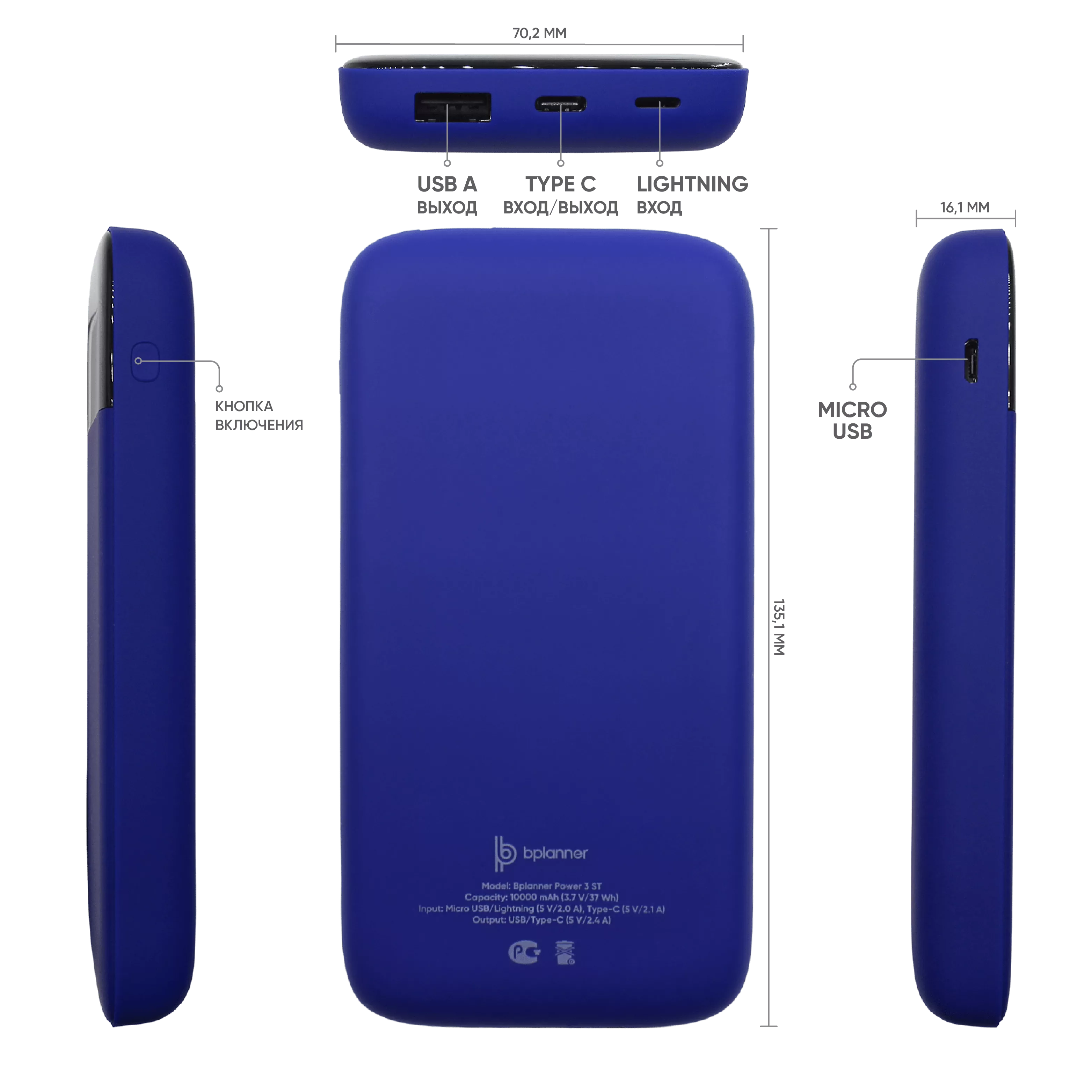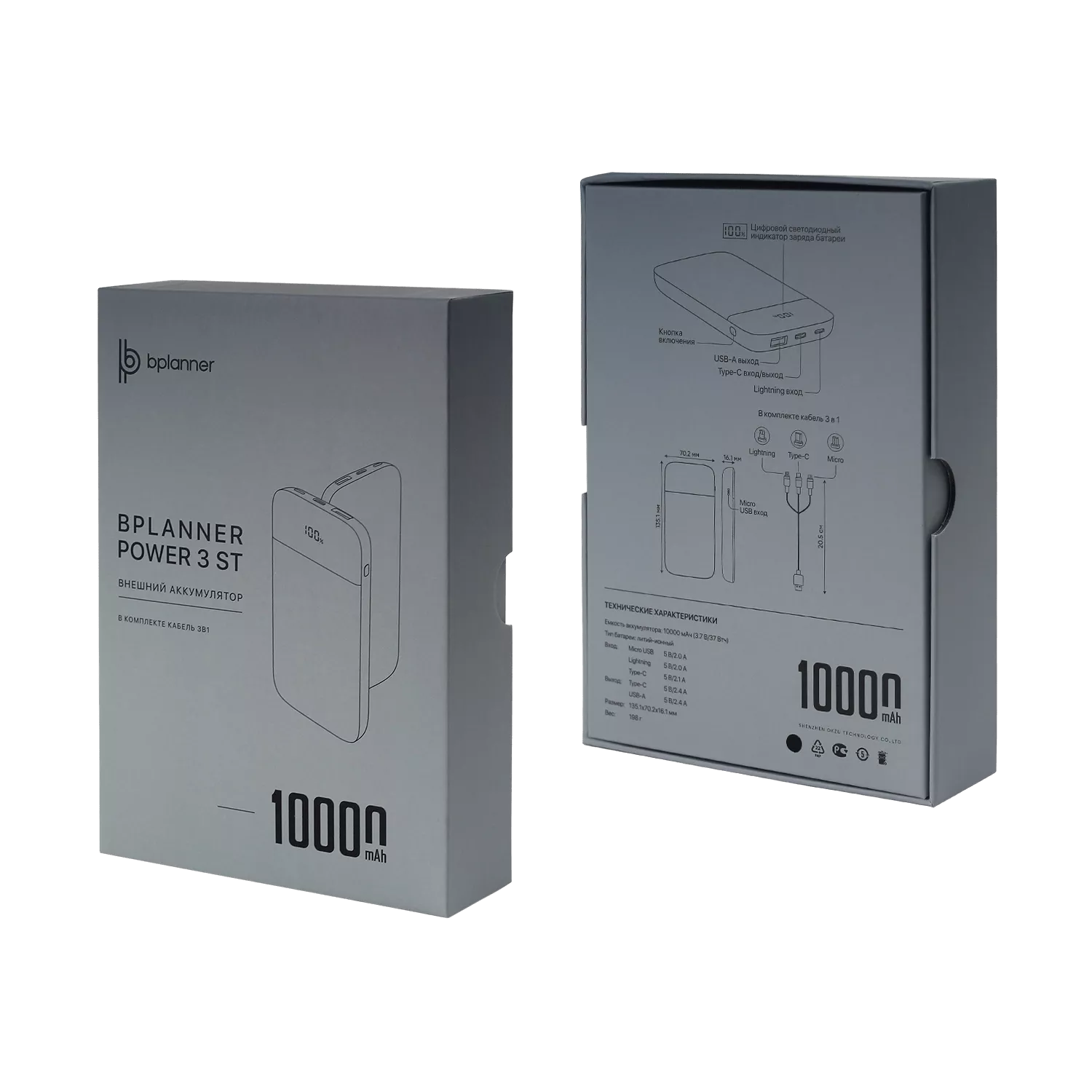 Внешний софт-тач аккумулятор Bplanner Power 3ST емкостью 10000 mAh оснащен цифровым индикатором заряда. Дизайн аккумулятора дополняет черный дисплей заряда на передней панели устройства. Внешний аккумулятор оснащен входом Type С, Micro-USB и Lightning, что упрощает процесс его зарядки. В комплекте идет кабель 3 в 1 и инструкция. Комбинируется с ежедневниками Bplanner 1, Bplanner 2, Bplanner 4 ,а также ручками с софт-тач покрытием.