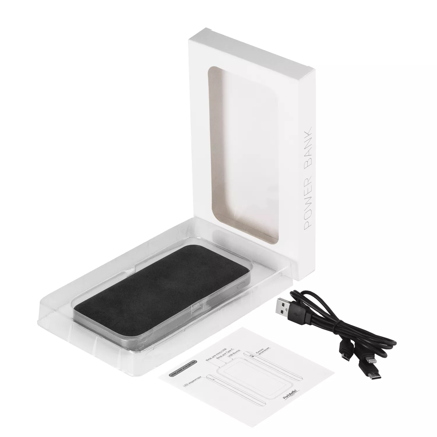 Яркий аккумулятор In Velour - отличная пара ежедневнику одноименной коллекции. Материал устройства приятен к рукам: бархатистая поверхность и плавные линии корпуса дарят комфорт при использовании. Стильный дизайн обеспечивается грамотным сочетанием основных элементов корпуса с боковой панелью. Внешне напоминая велюр, корпус гаджета выполнен в насыщенном бирюзовом цвете, вкрапления которого плавно переходят от темных тонов к более светлым. Боковая панель из пластика серого матового металлика включает в себя индикатор питания, а также порты USB, micro-USB и Type-C. Конструкция аккумулятора позволяет использовать обе стороны для персонализации, что дает новые возможности для воплощения идеи дизайна.
