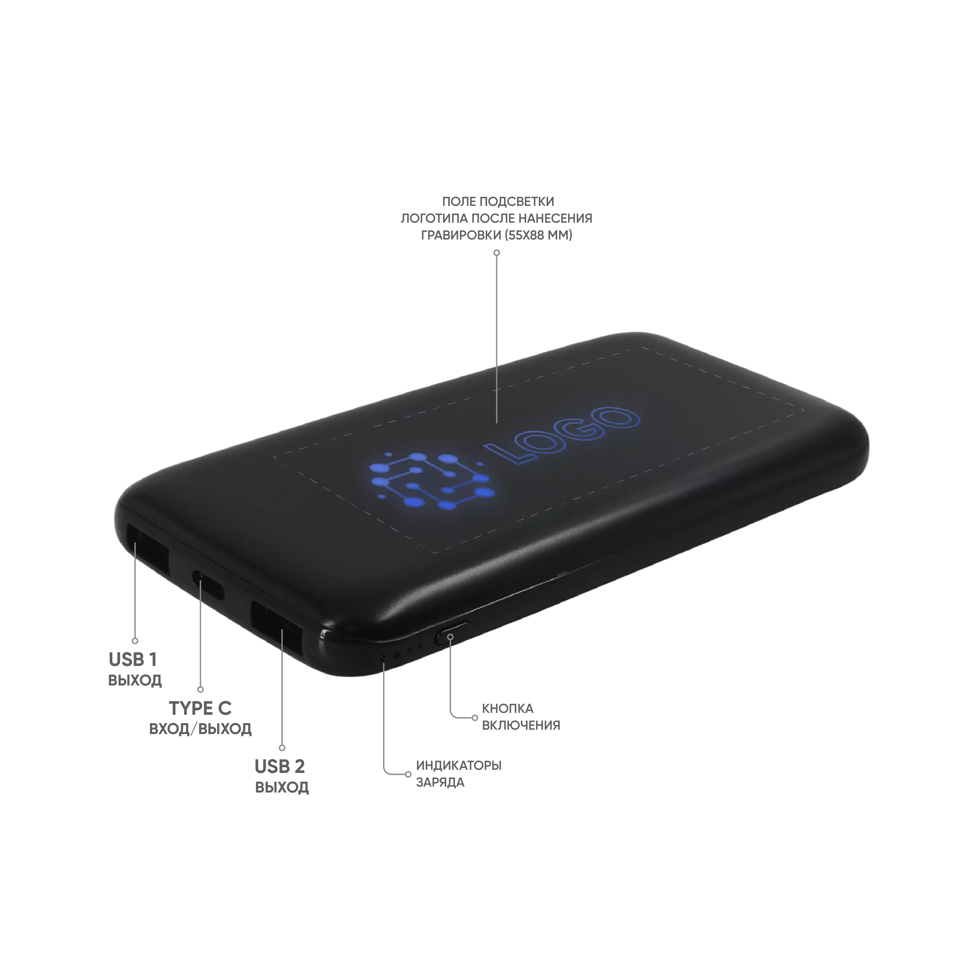 Внешний аккумулятор Bplanner Power 4ST емкостью 8000 mAh с подсветкой логотипа может одновременно заряжать 2 устройства. Характерное отличие аккумулятора — подсветка логотипа после гравировки. Размер поля подсветки логотипа - 55х88 мм. Внешний аккумулятор оснащен входом Type-С. В комплекте идет кабель 3 в 1 и инструкция. Комбинируется с ежедневниками Bplanner 1, Bplanner 2, Bplanner 4, а также ручками с софт-тач покрытием.