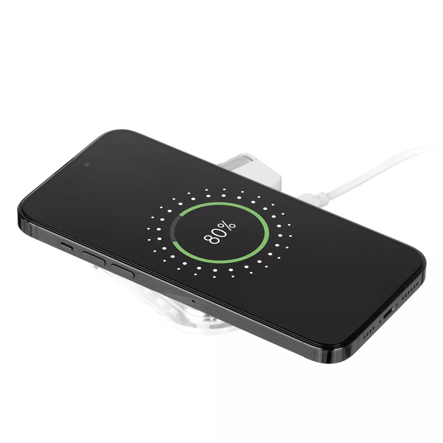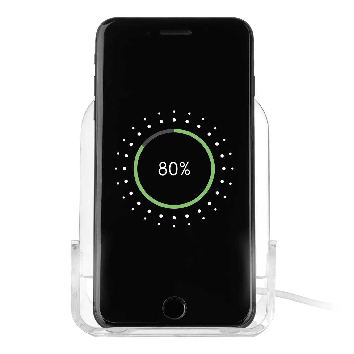Конструкция позволяет заряжать смартфон в вертикальном и горизонтальном положении, а также просто использовать как подставку.