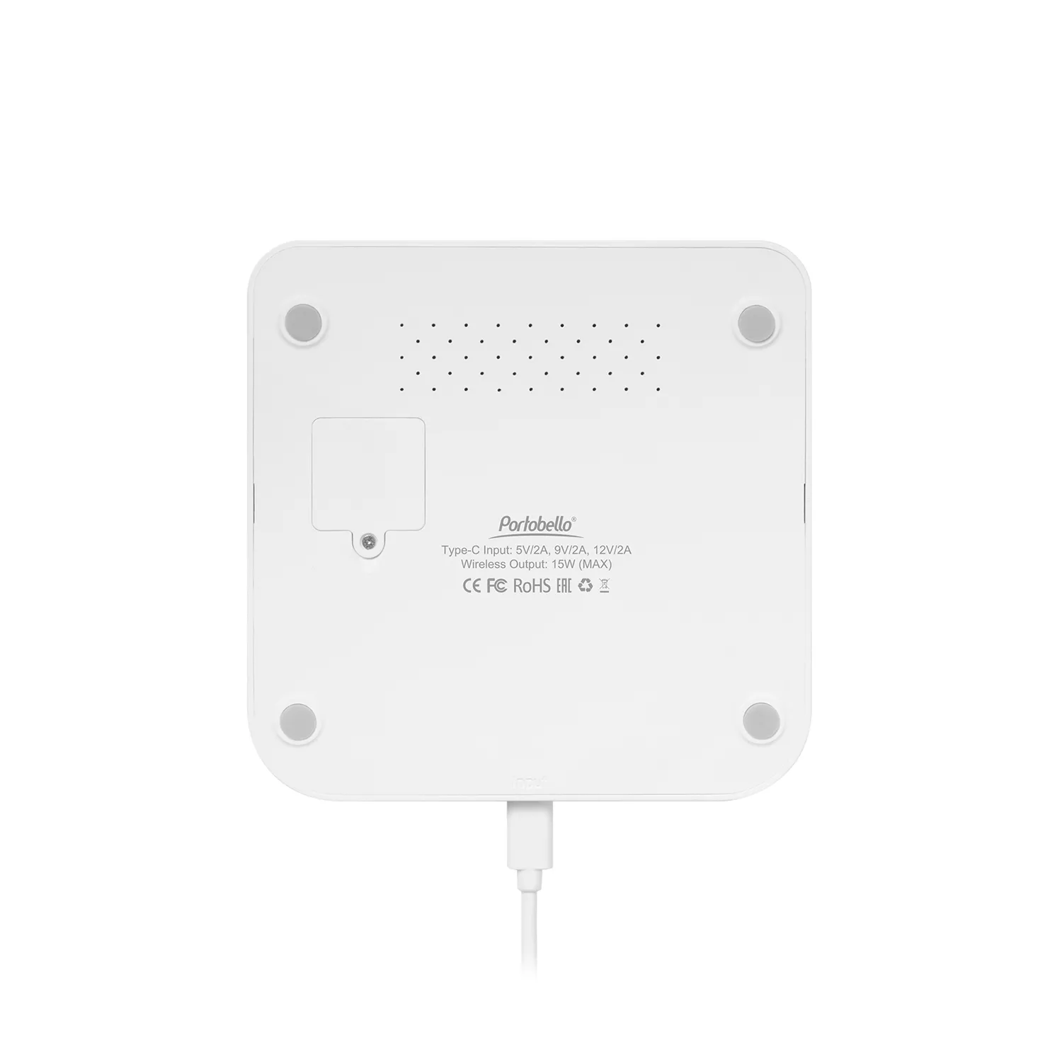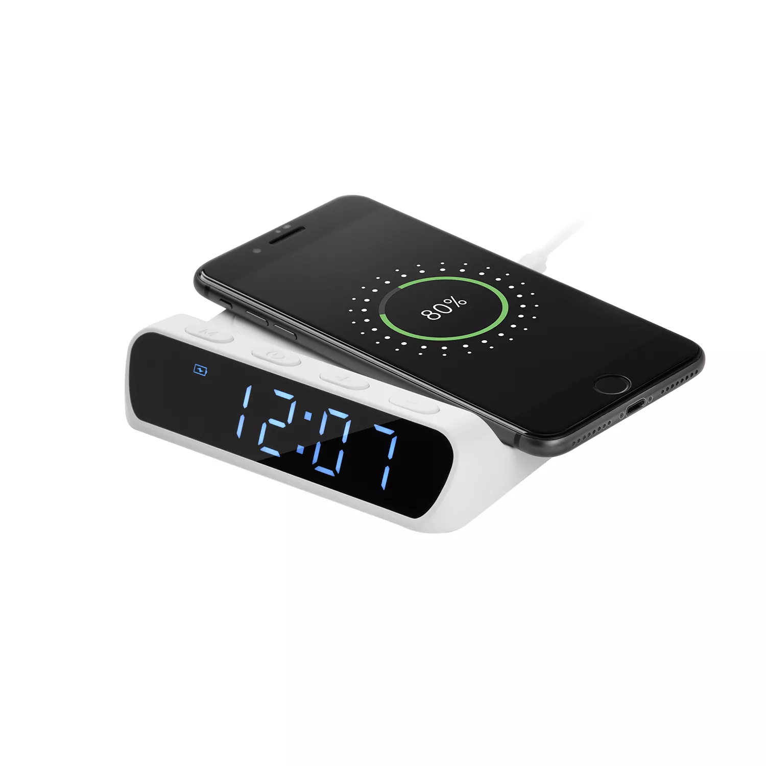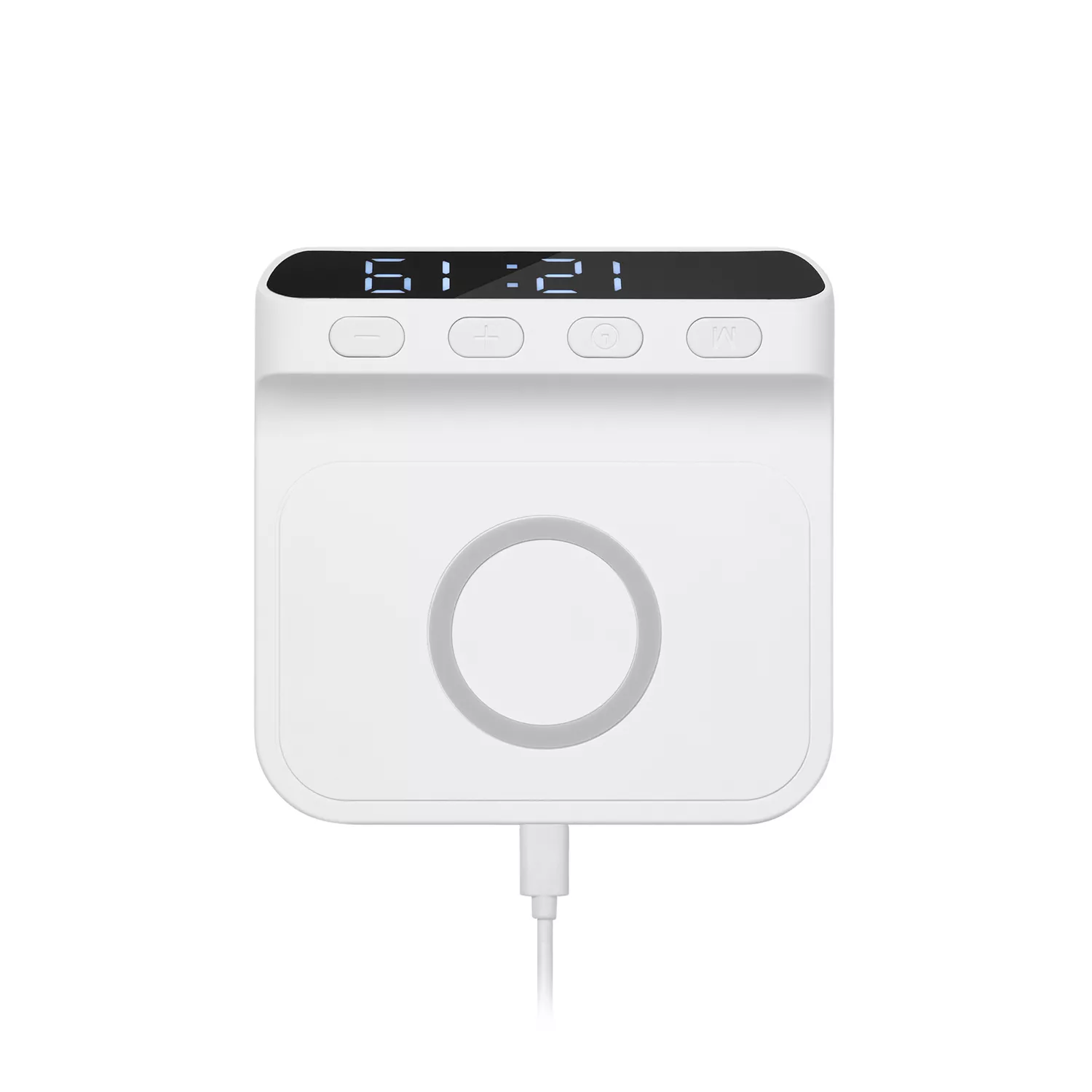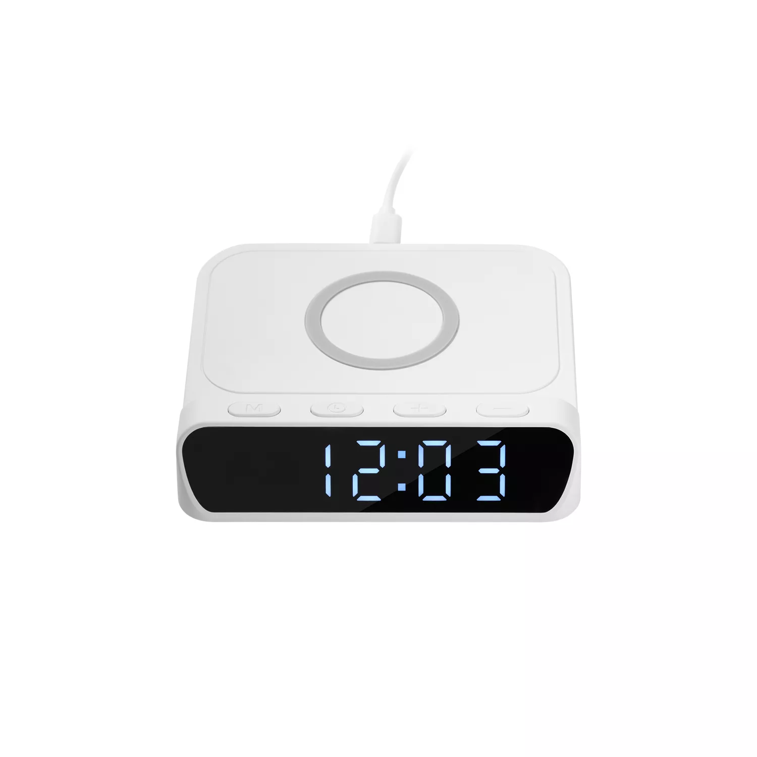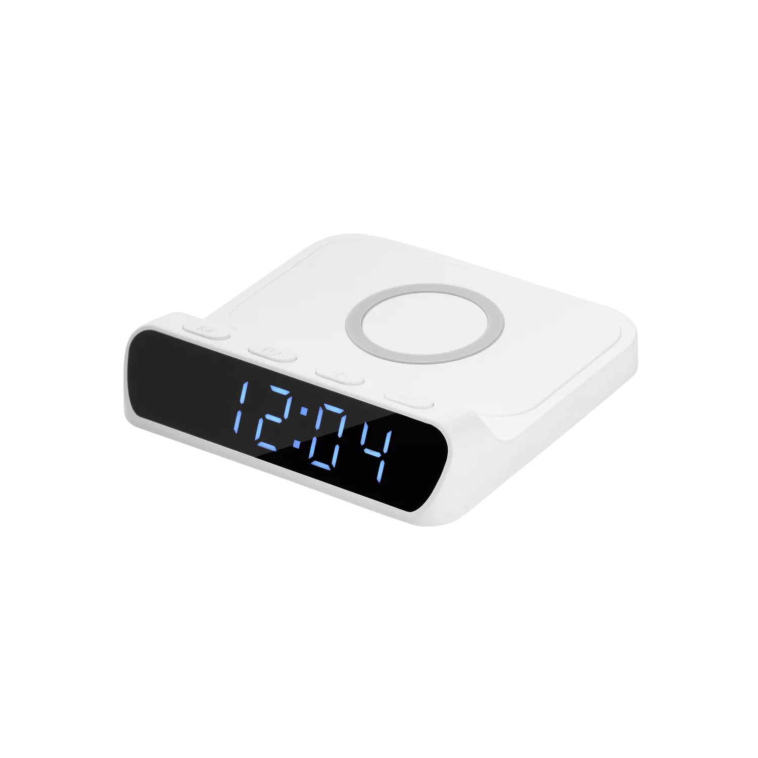Зарядная станция 15W с часами и будильником. 12- или 24- формат времени. Три уровня яркости дисплея, индикаторы уровня заряда и будильника. Функция энергосбережения - после отключения питания внутренняя батарейка-«таблетка» сохраняет настройки часов, и после повторного подключения к питанию часы не нужно переустанавливать.