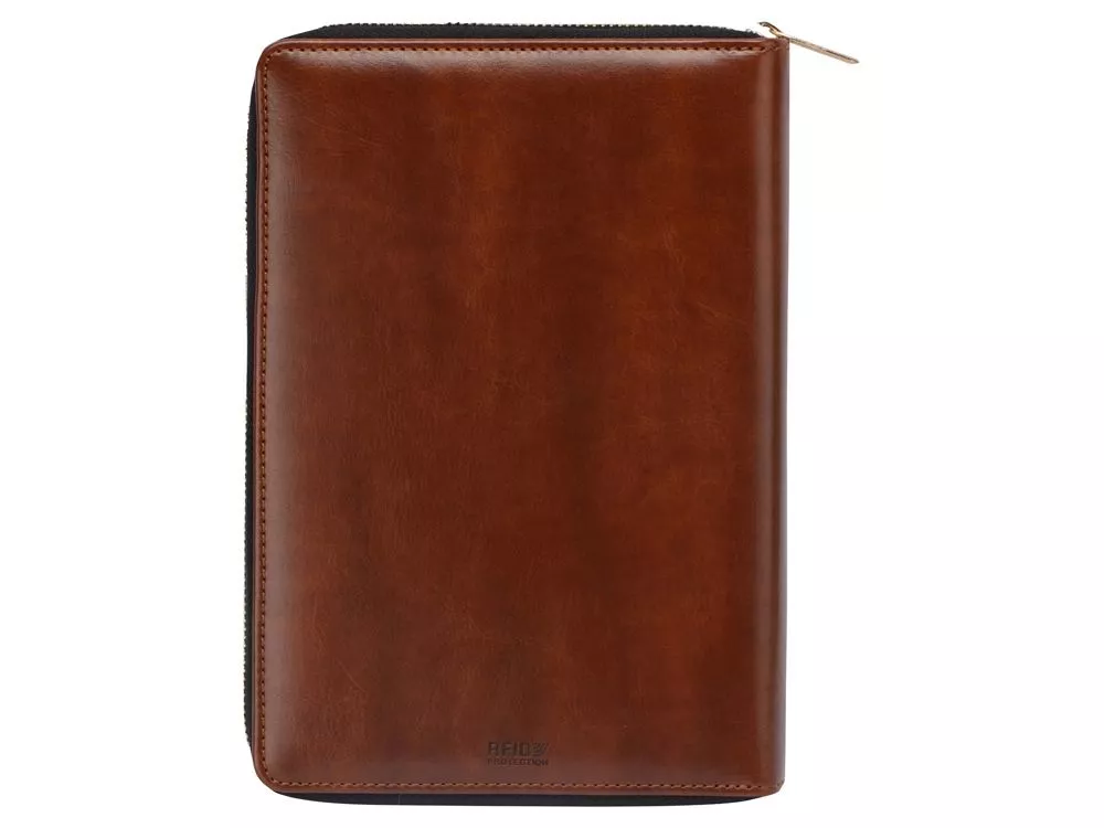 Блокнот снабжен 5 отделениями для карт и RFID защитой, которая охраняет вашу личную и финансовую информацию от мошенников. Внутри блокнота есть петля для ручки в тон (ручка в комплект не входит).