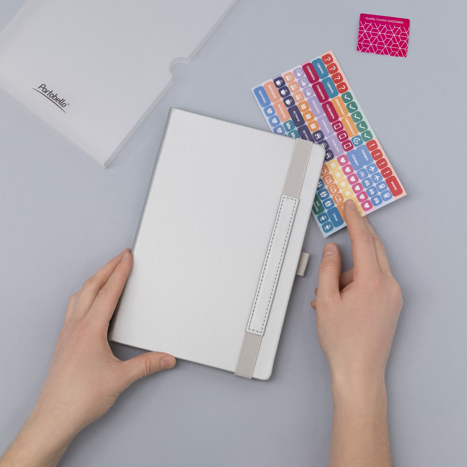 Элегантный недатированный ежедневник Alpha станет вашим надежным спутником в мире планирования и идей. Твердая, гладкая матовая обложка из высококачественной искусственной кожи с приятным на ощупь покрытием Soft Touch и легким эффектом пудры не только выглядит роскошно, но и устойчива к износу. Скругленные уголки придают ежедневнику изящный и утонченный вид.