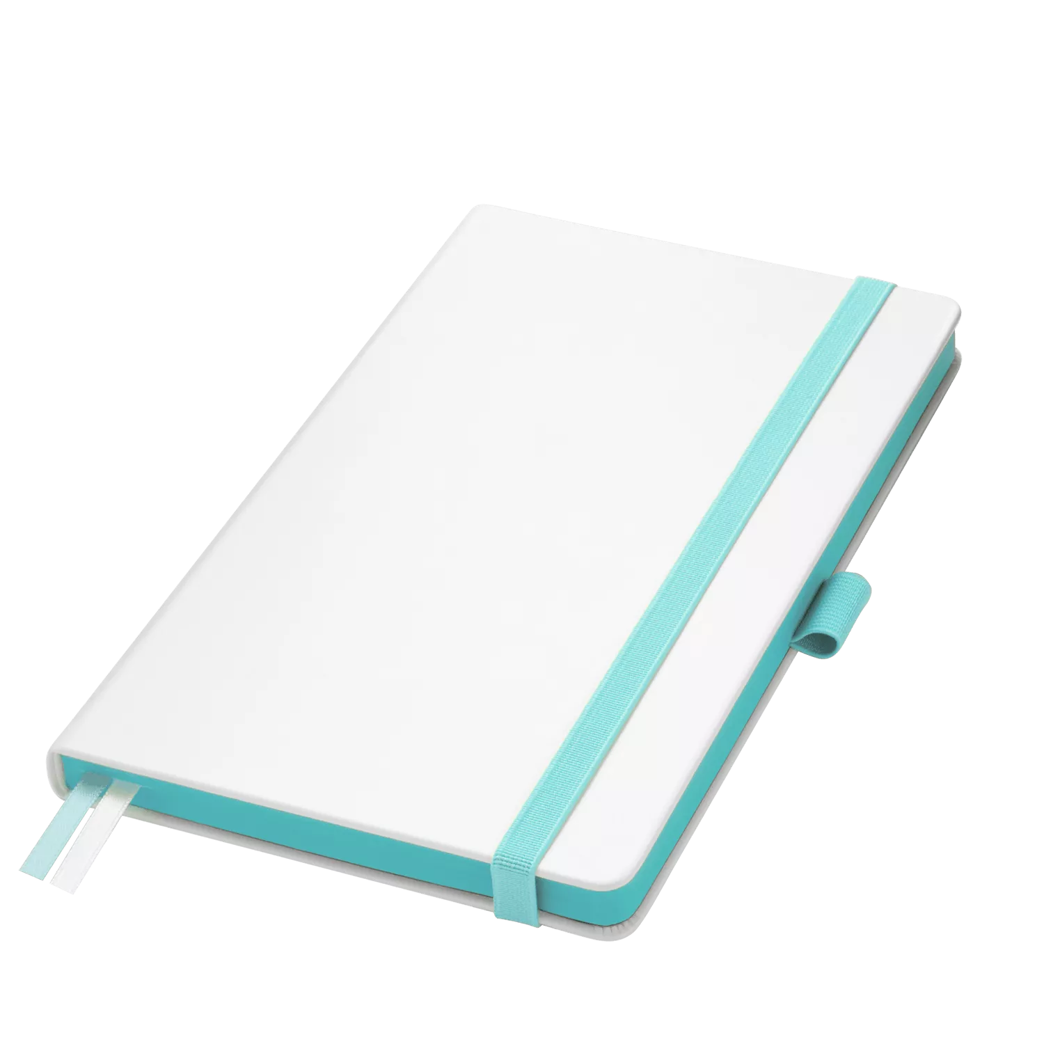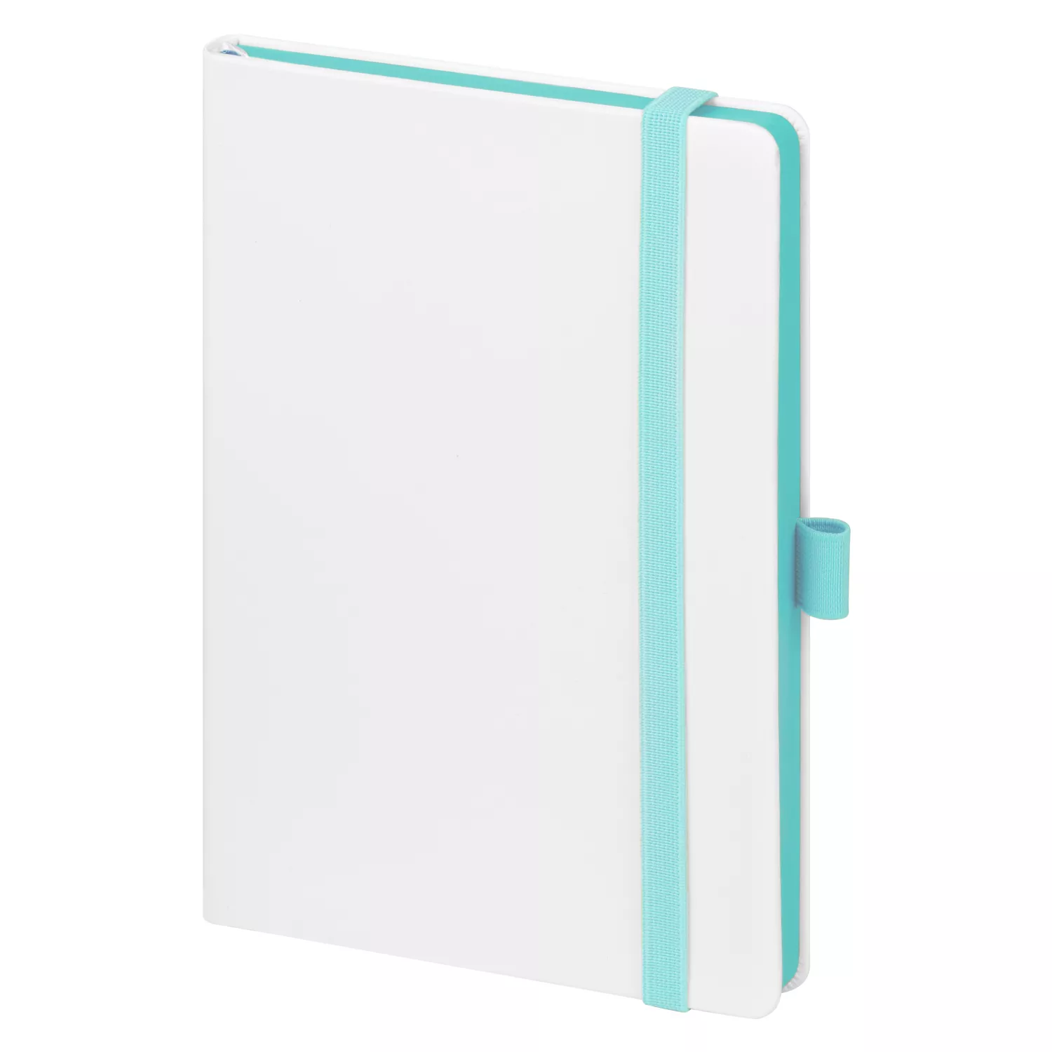 Недатированный ежедневник выполнен в жесткой обложке из искусственной кожи со скругленными уголками. Переплетный материал гладкий, с легкой естественной паутинкой морщин, имеет полуглянцевый блеск. Цвет – чистый белый. Бирюзовые матовые форзац и нахзац, а также бирюзовый срез блока создают оригинальный динамичный цветовой ансамбль и подчеркивают белизну обложки. Страницы светло-кремового цвета, из гладкого офсета, слегка шелковистые, со скругленными уголками. Добавляют изделию мягкую комфортную теплоту. Двойное атласное ляссе составлено из бирюзовой и белой лент. Каждая шириной 6 мм, имеет легкий блеск. Вертикальная фиксирующая резинка прочная, надежная и удобная, в тон срезу. Есть петелька для ручки в тон резинки. Карман на заднем форзаце.