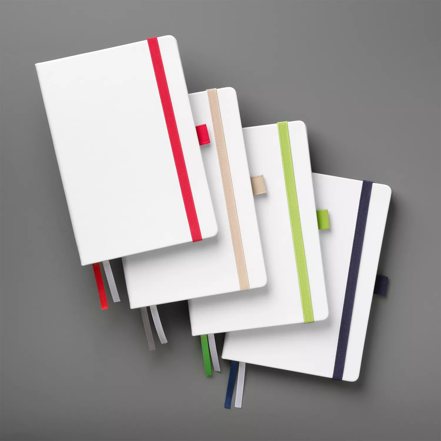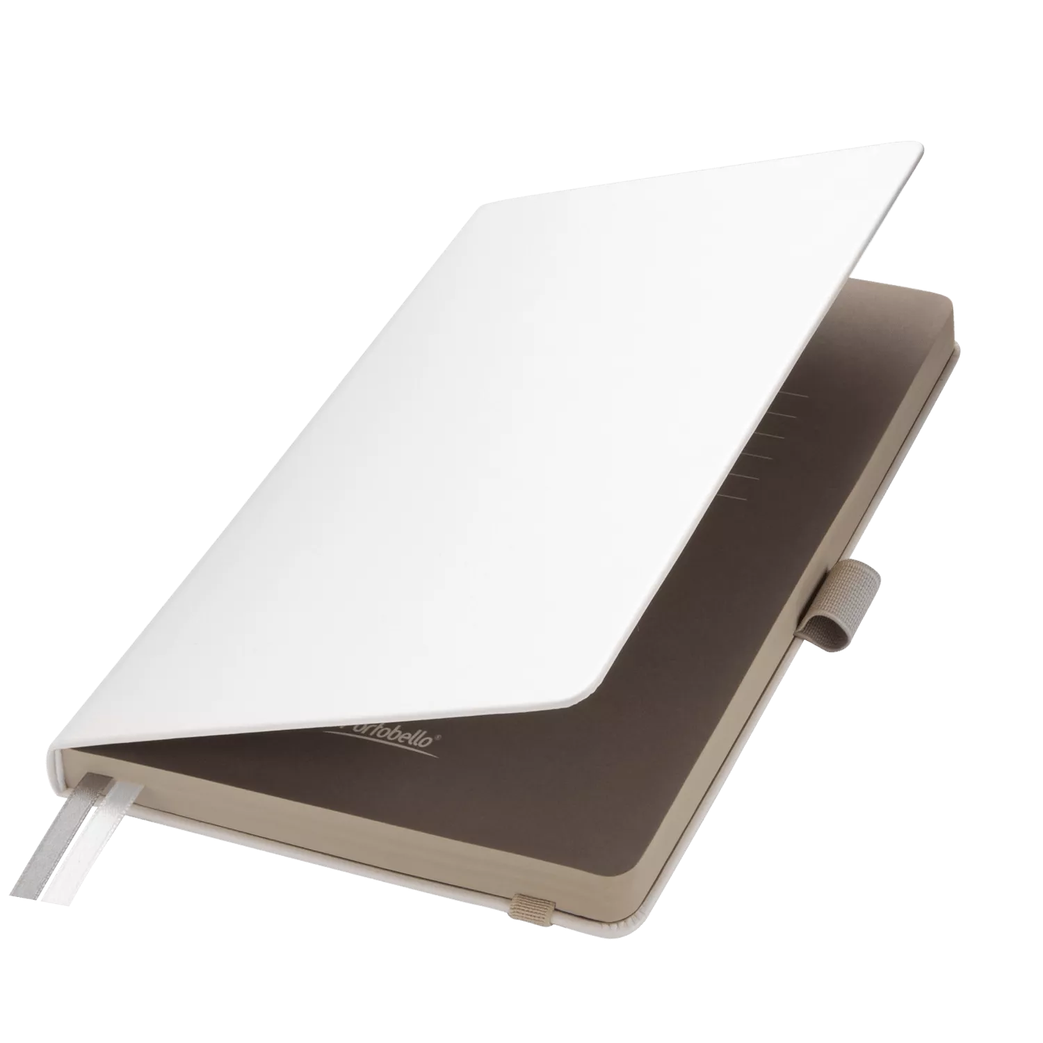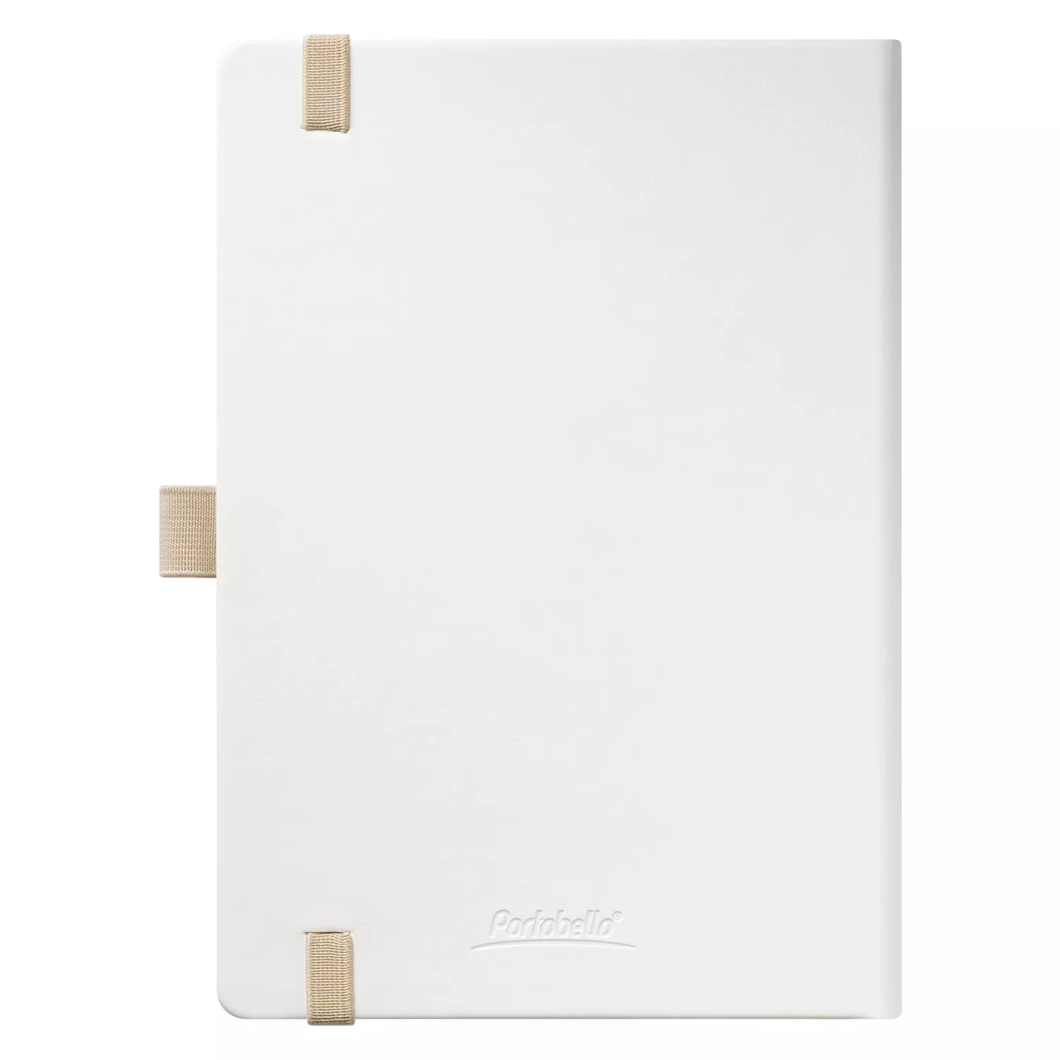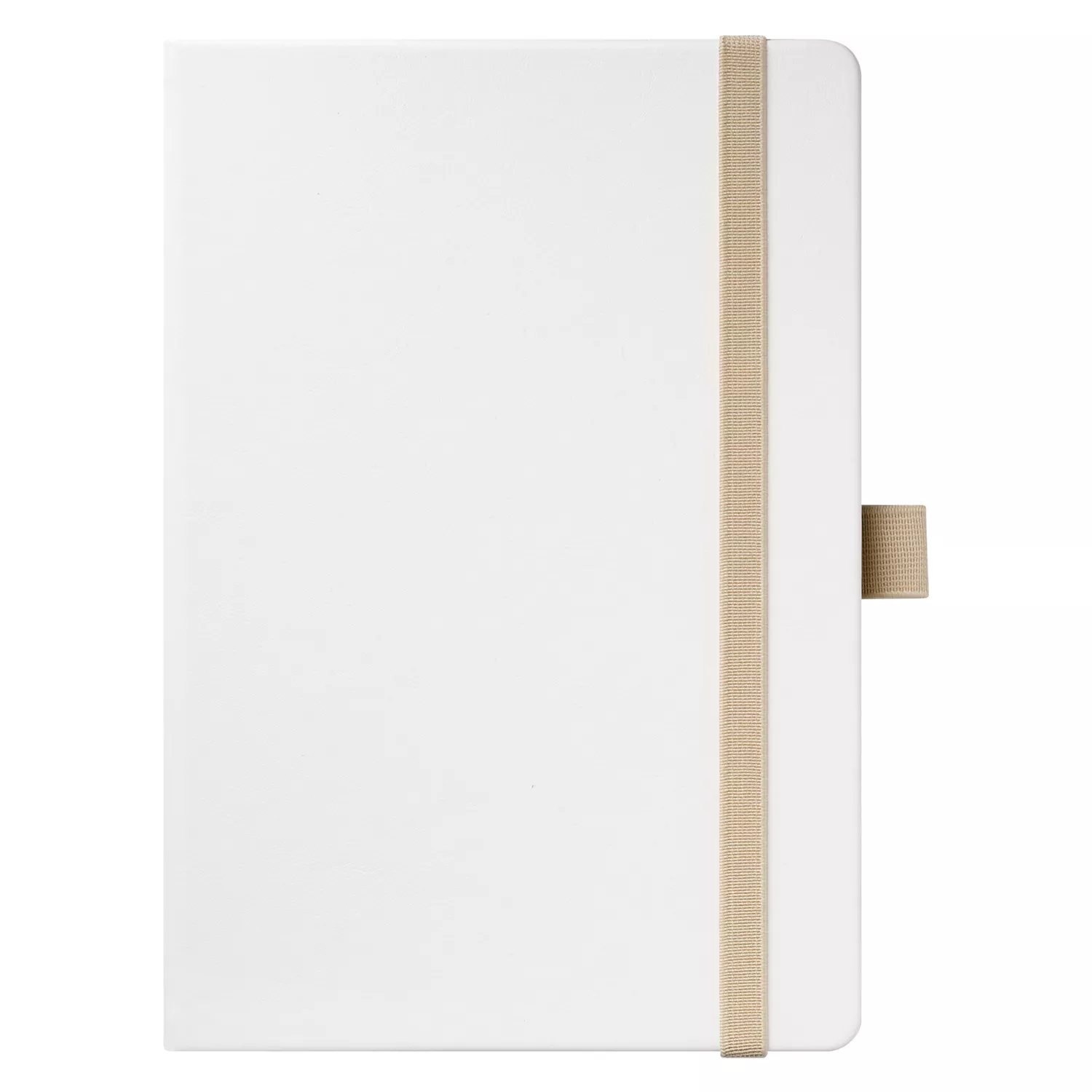 Недатированный ежедневник выполнен в жесткой обложке из искусственной кожи со скругленными уголками. Переплетный материал гладкий, с легкой естественной паутинкой морщин, имеет полуглянцевый блеск. Цвет – чистый белый. Серые матовые форзац и нахзац, а также серо-бежевый срез блока создают оригинальный динамичный цветовой ансамбль и подчеркивают белизну обложки. Страницы светло-кремового цвета, из гладкого офсета, слегка шелковистые, со скругленными уголками. Добавляют изделию мягкую комфортную теплоту. Двойное атласное ляссе составлено из серой и белой лент. Каждая шириной 6 мм, имеет легкий блеск. Вертикальная фиксирующая резинка прочная, надежная и удобная, в тон срезу. Есть петелька для ручки в тон резинки. Карман на заднем форзаце.