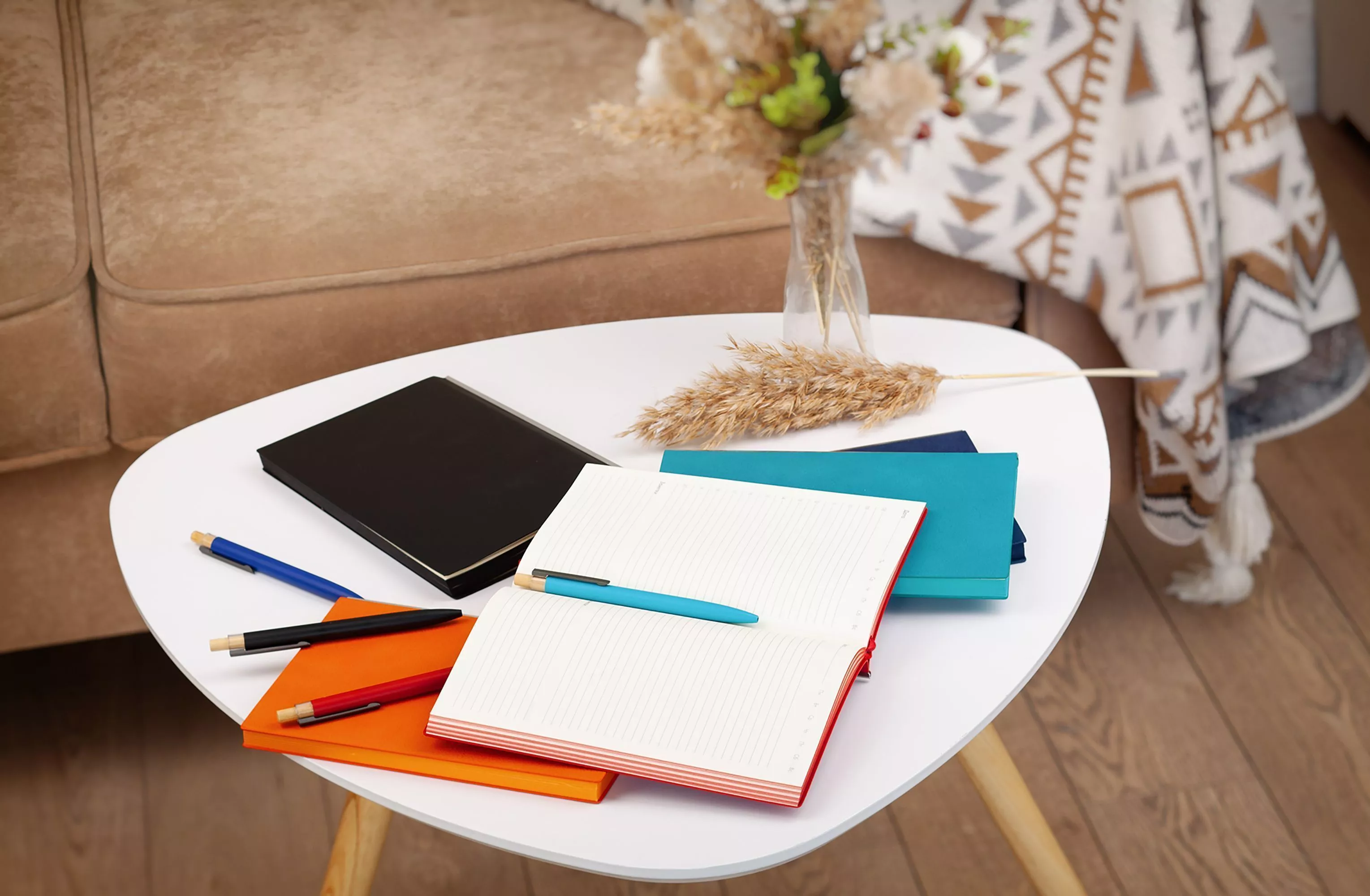 Материал обложки подходит для тиснения (блинтовое, фольга) и гравировки. С «Асконой» особенно стильно смотрятся наборы с ручками, которые имеют серебристые детали или нанесение с зеркальной гравировкой.