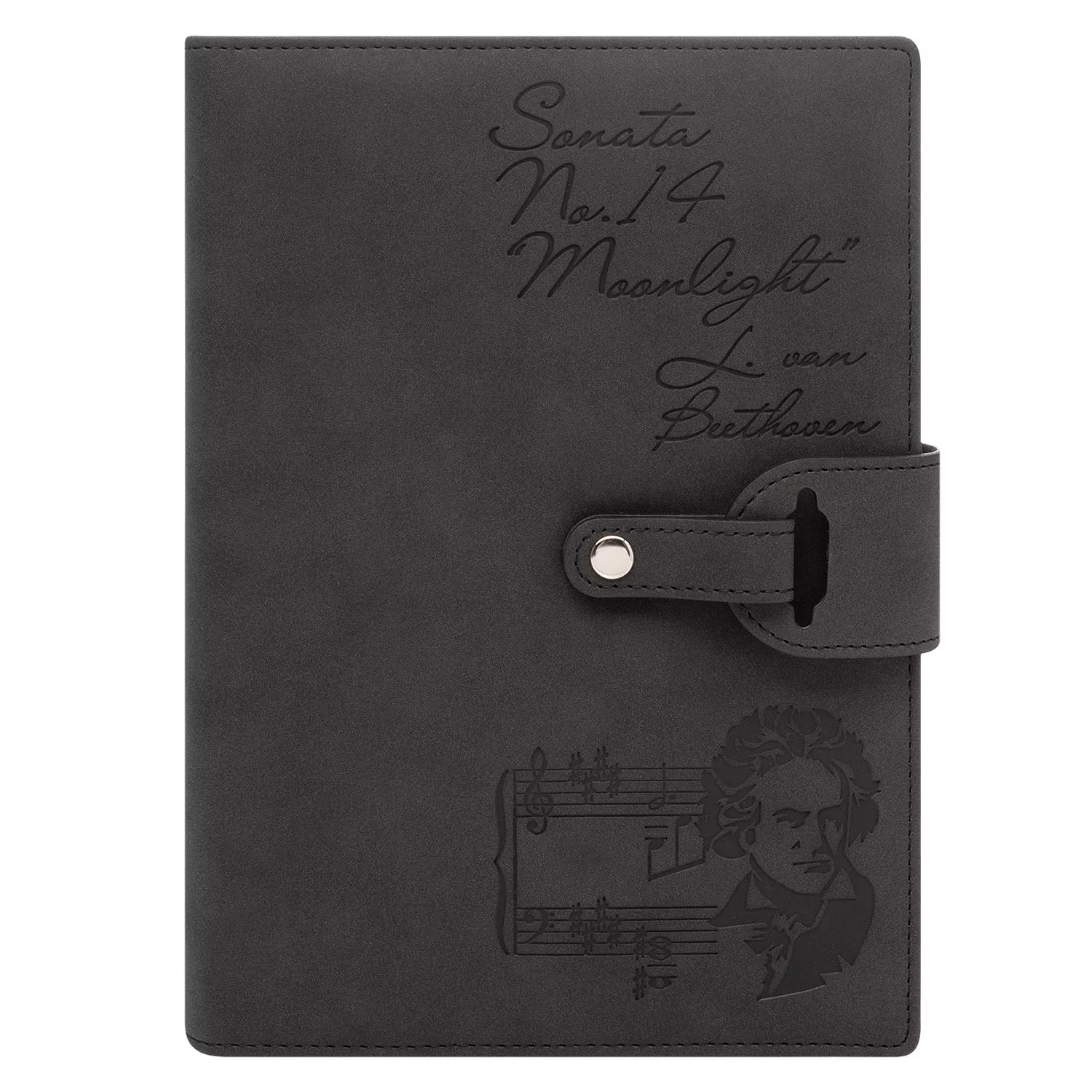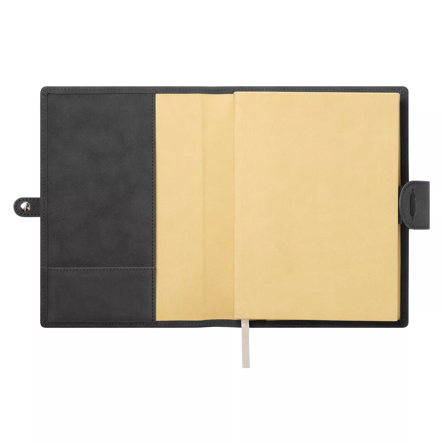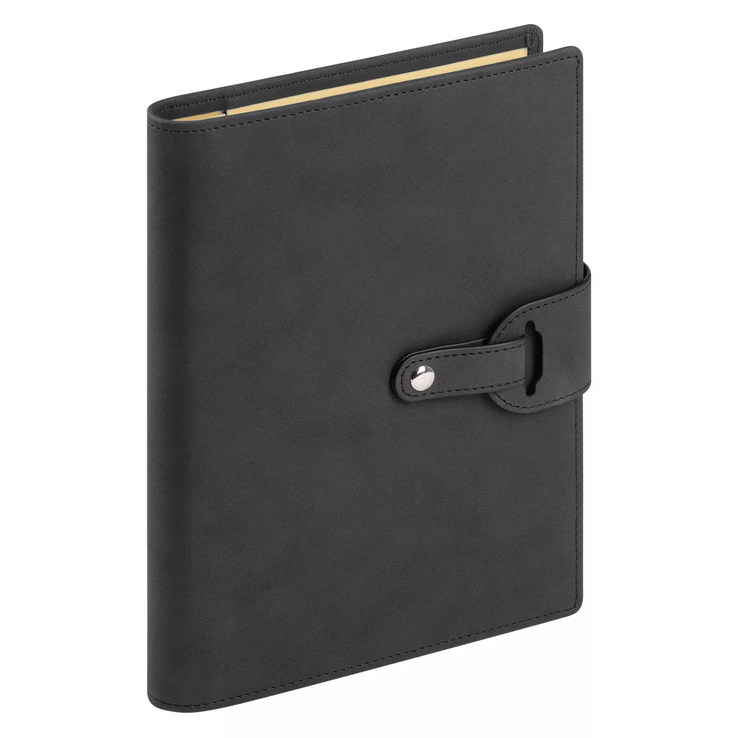 Застежка двойная – состоит из ремешка с металлической кнопкой и декоративной петли из материала обложки