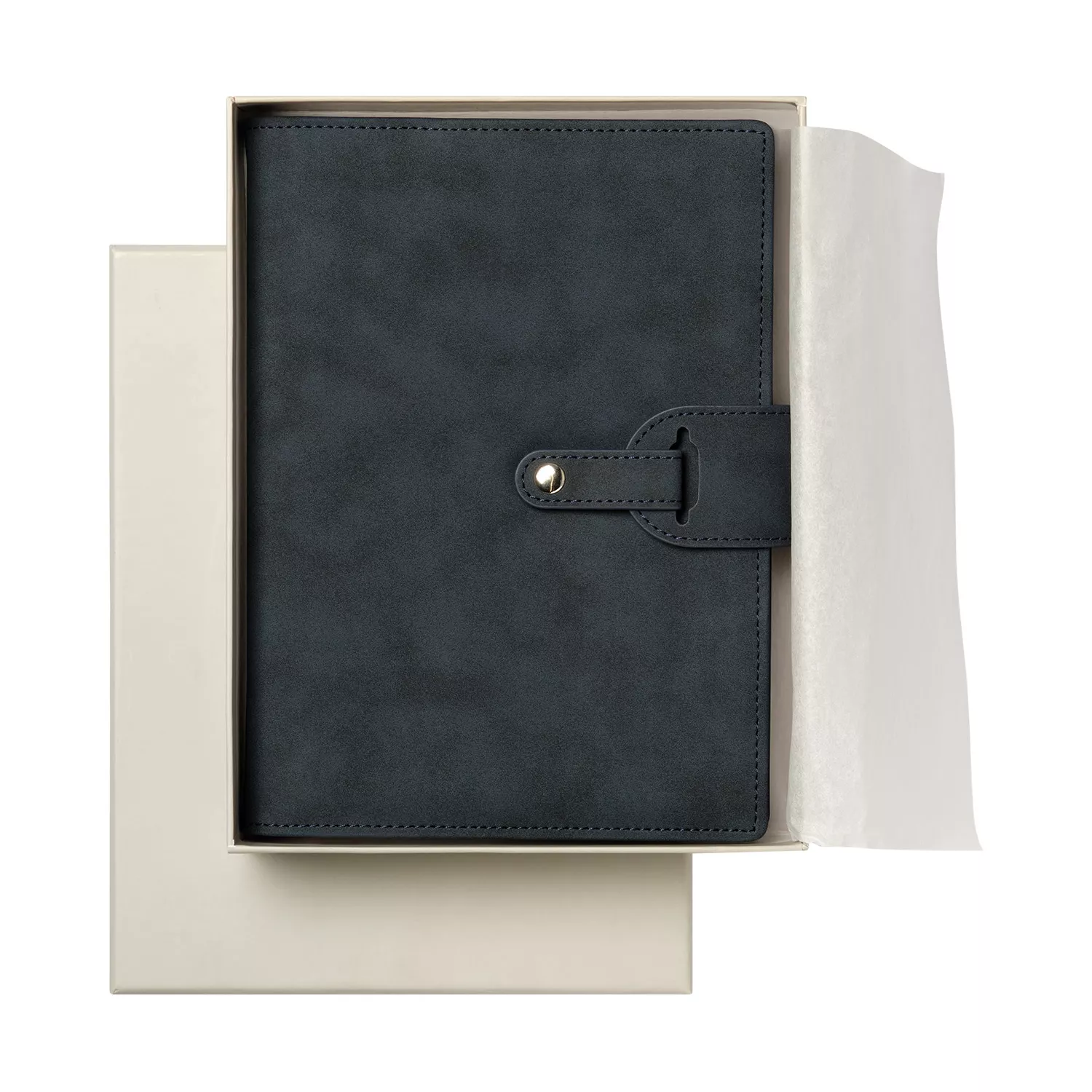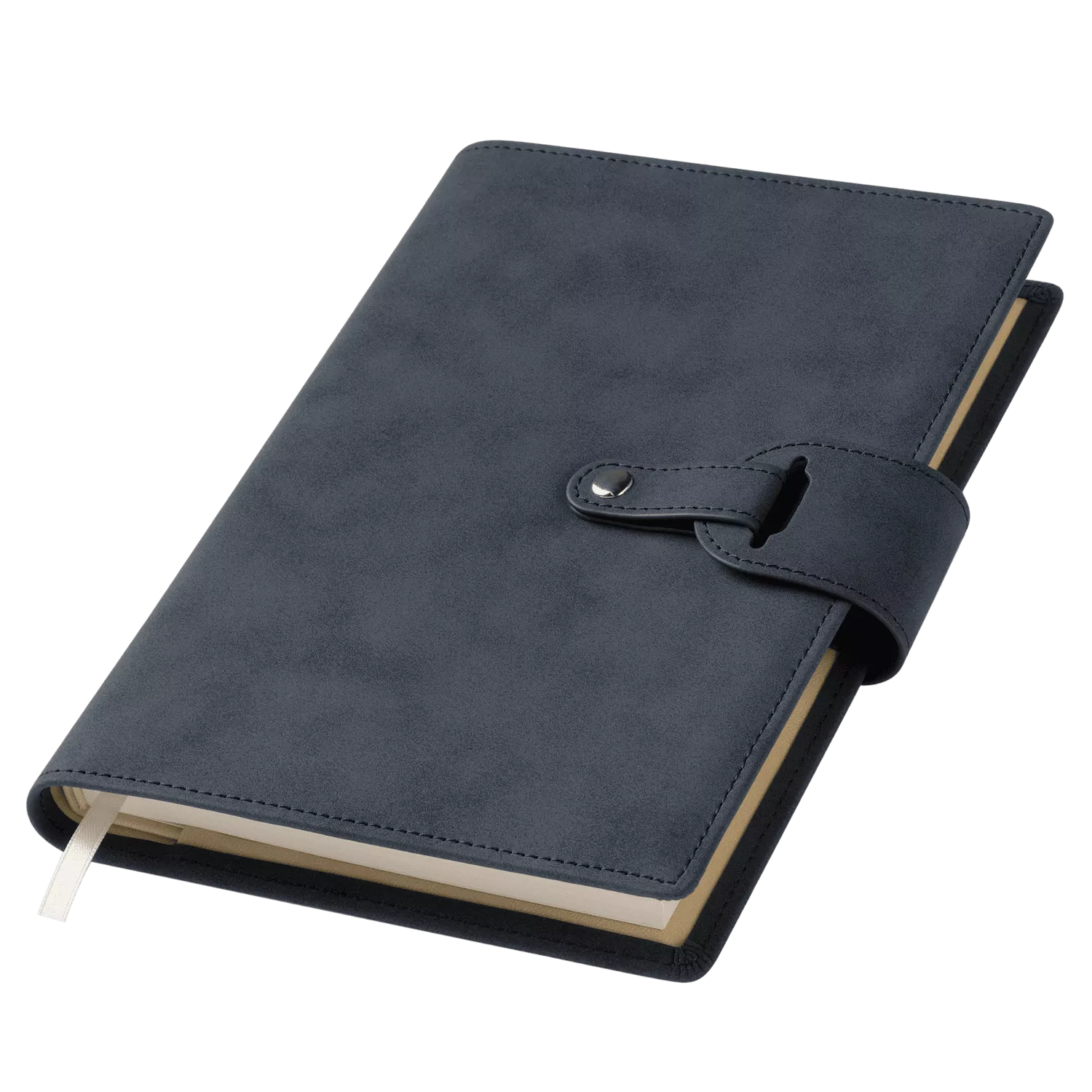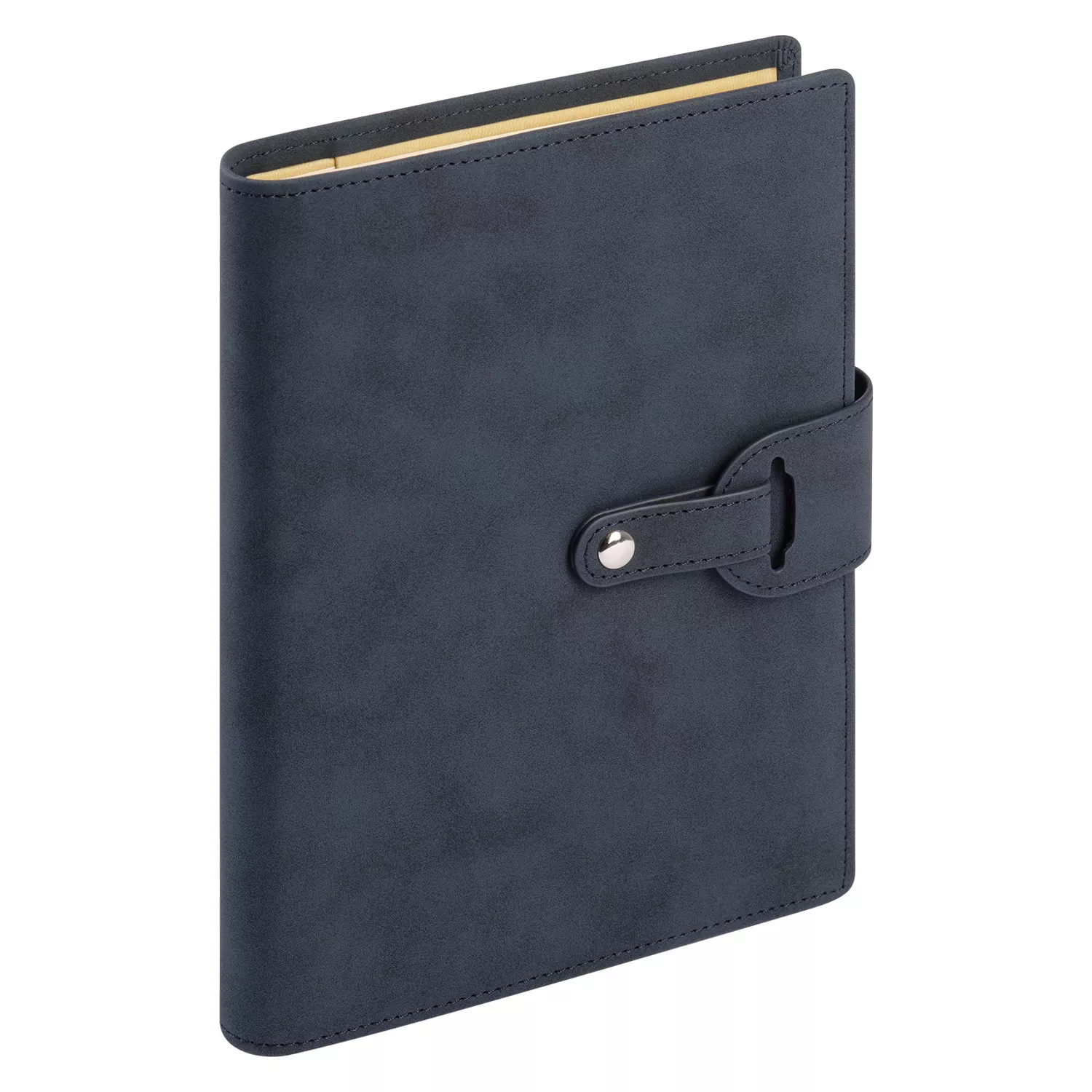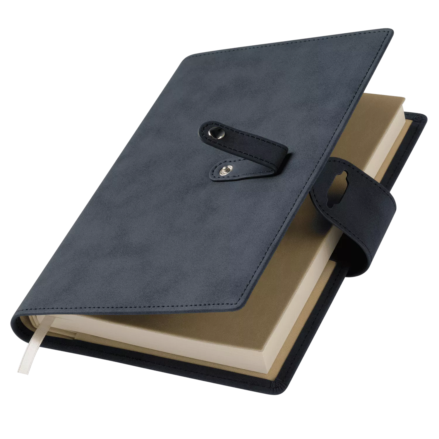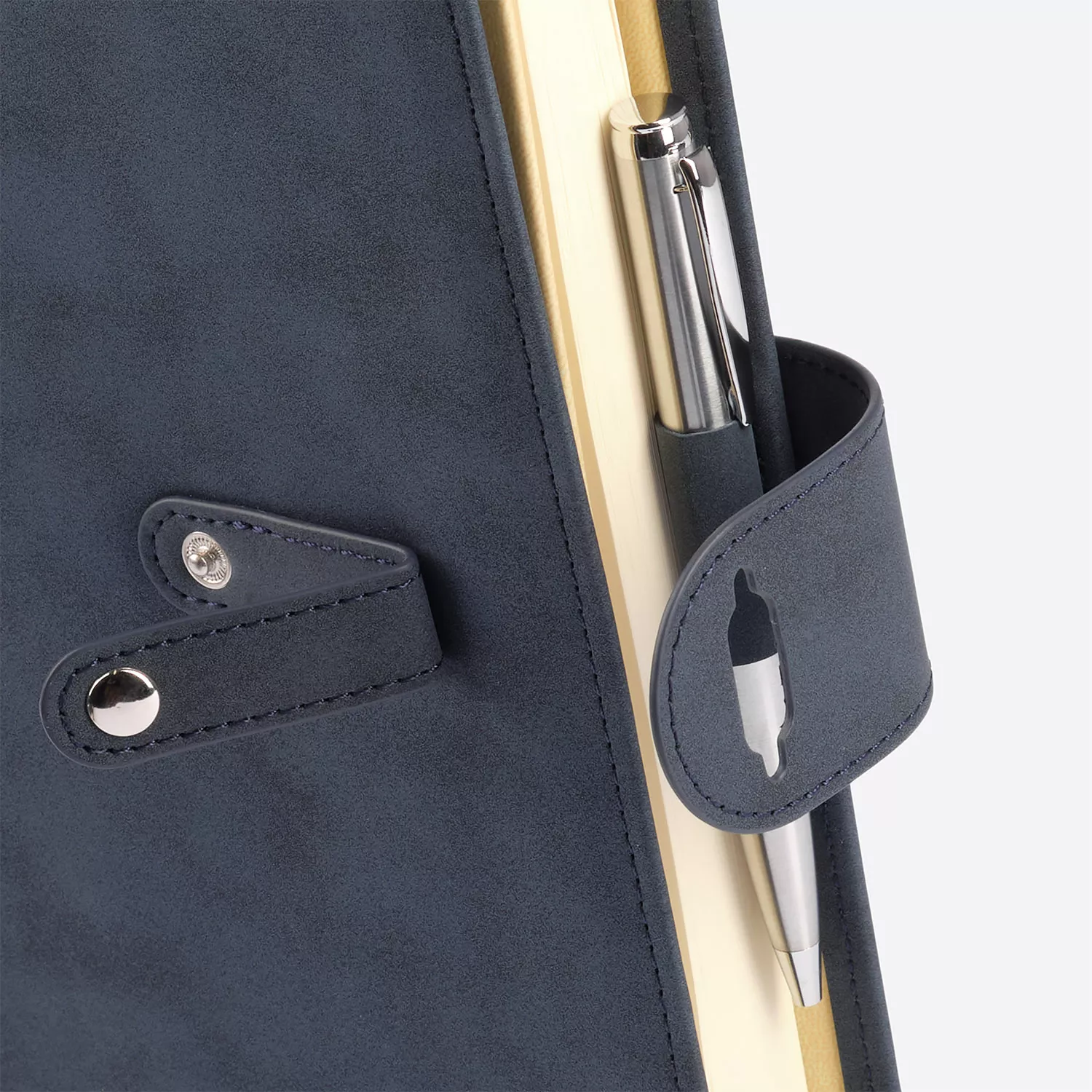 Застежка двойная – состоит из ремешка с металлической кнопкой и декоративной петли из материала обложки