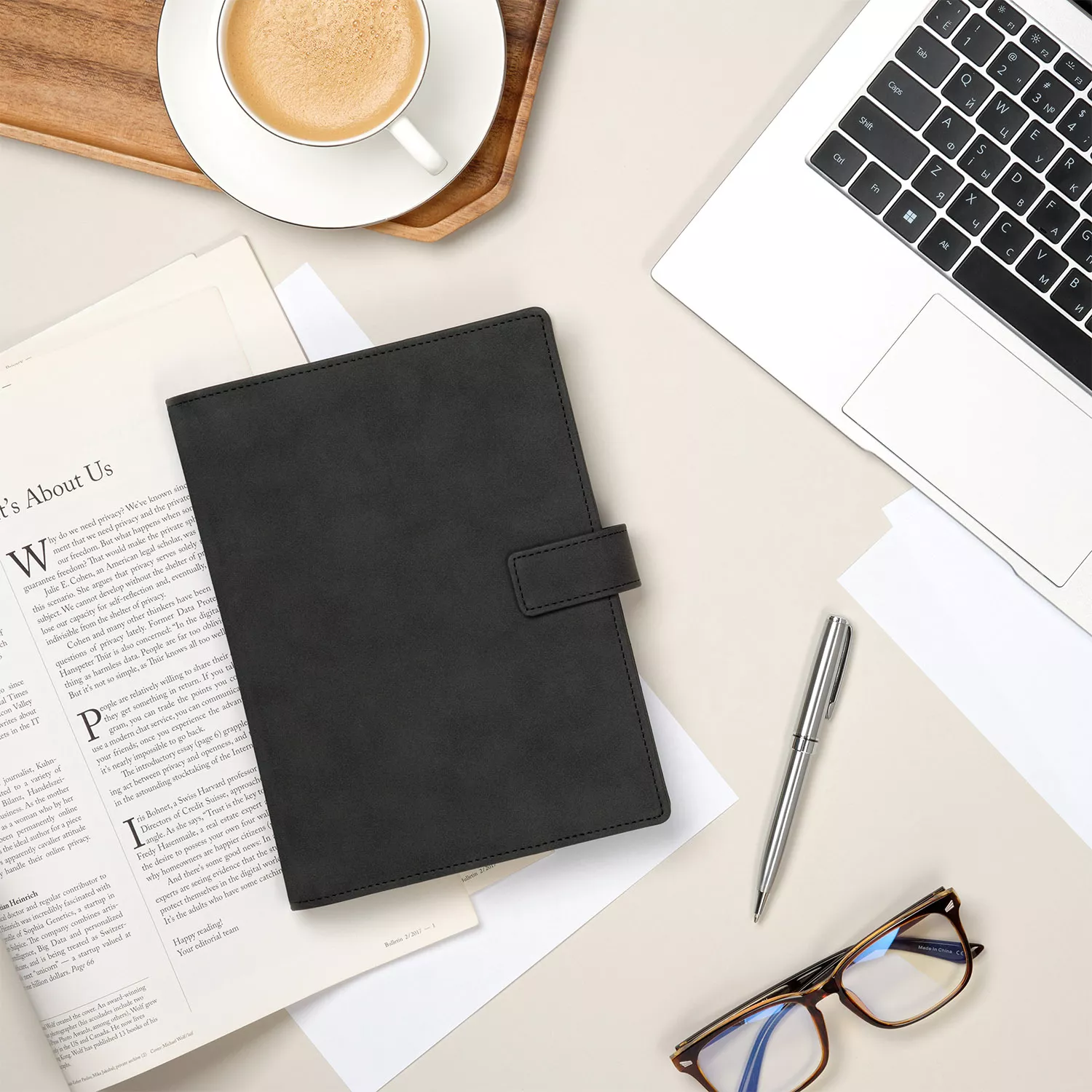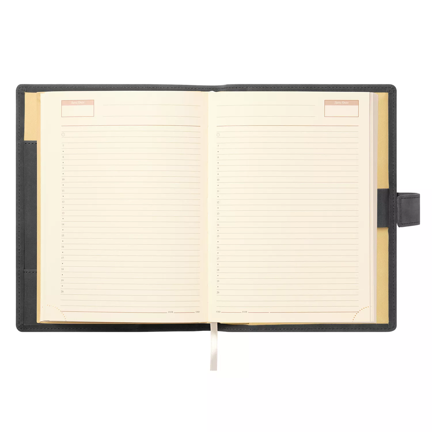 Royal NEO — это гармоничное сочетание элегантности и функциональности. Съемная обложка из высококачественной искусственной кожи Nuba с приятной замшевой текстурой и изысканной прошивкой по периметру в тон придает ежедневнику утонченный вид. Удобный хлястик на кнопке с практичной петелькой для ручки, выполненной из того же материала, что и обложка, обеспечивает надежную фиксацию и дополняет стильный дизайн.
