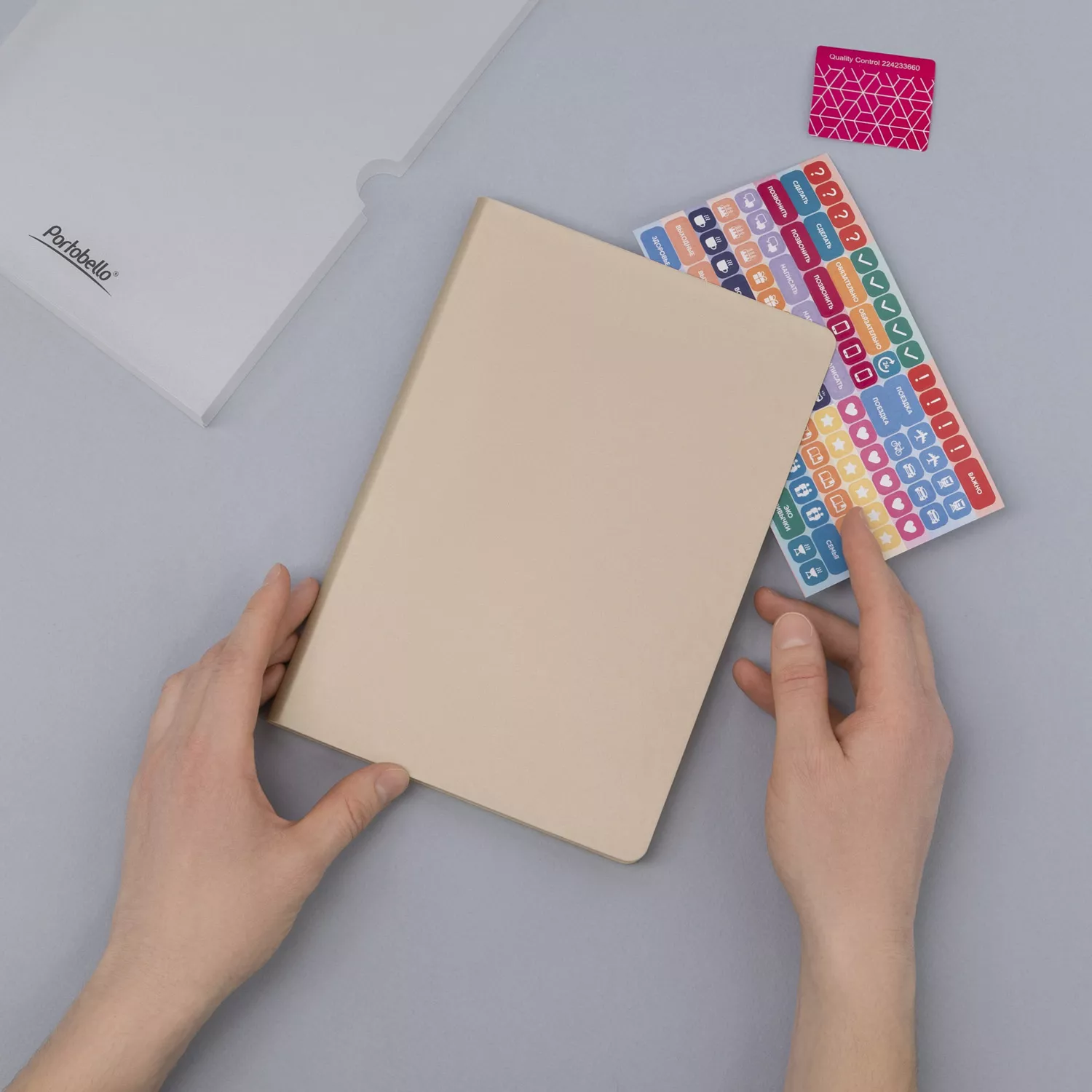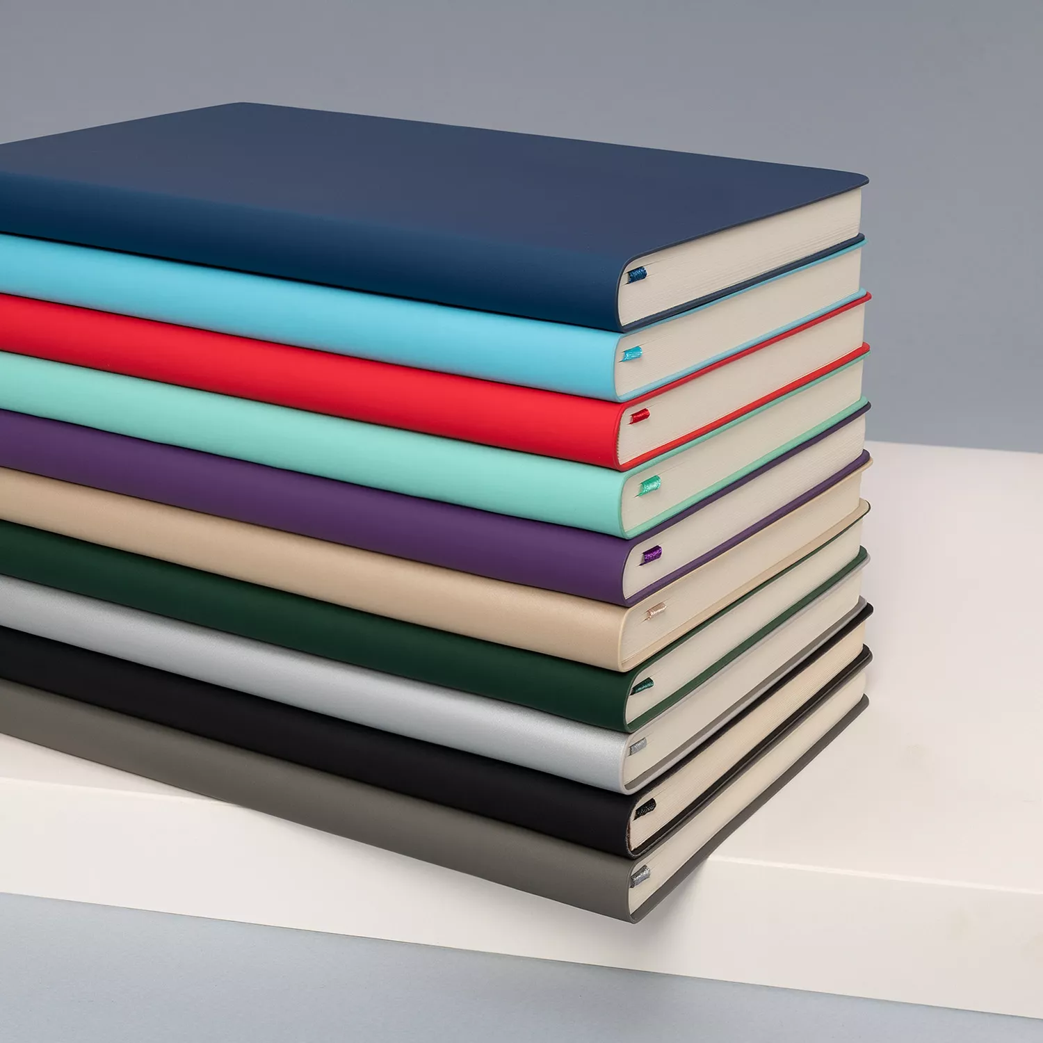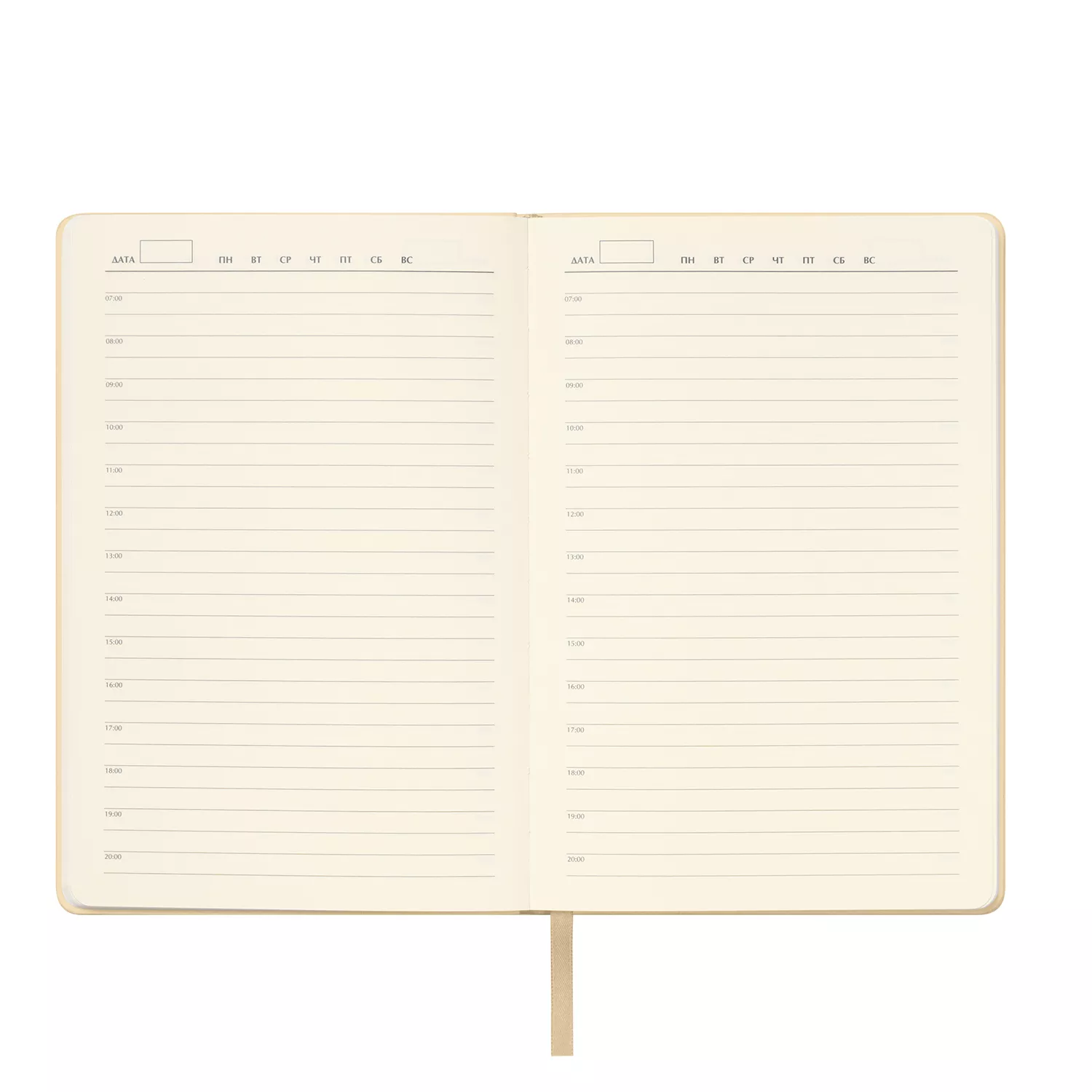 Матовое покрытие Soft Touch с деликатным пудровым эффектом подарит неповторимое тактильное удовольствие. А кремовые форзац, нахзац и срез блока создадут гармоничное обрамление для гладких шелковистых страниц кремового оттенка. Элегантное атласное ляссе поможет вам легко ориентироваться в записях.