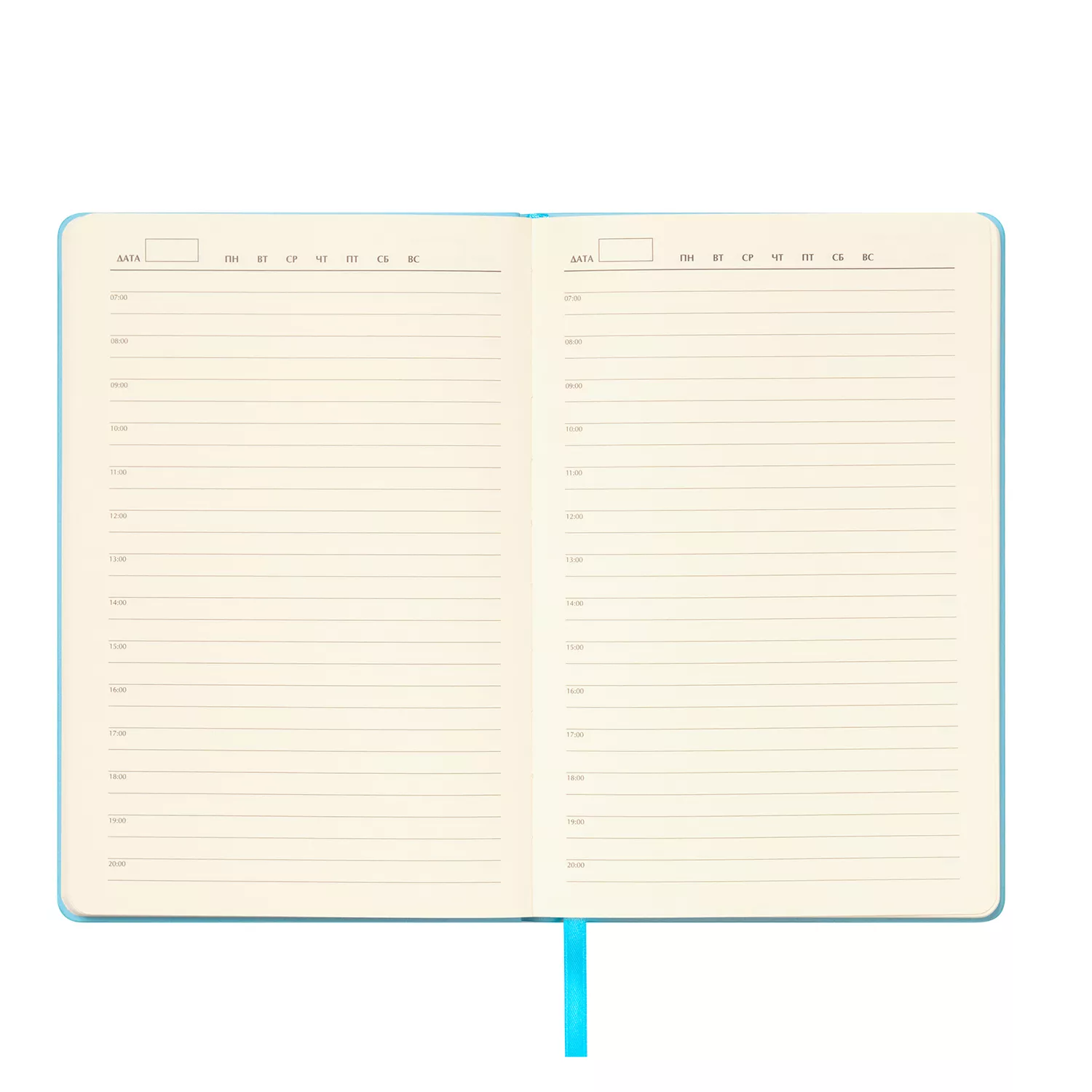 Матовое покрытие Soft Touch с деликатным пудровым эффектом подарит неповторимое тактильное удовольствие. А кремовые форзац, нахзац и срез блока создадут гармоничное обрамление для гладких шелковистых страниц кремового оттенка. Элегантное атласное ляссе поможет вам легко ориентироваться в записях.