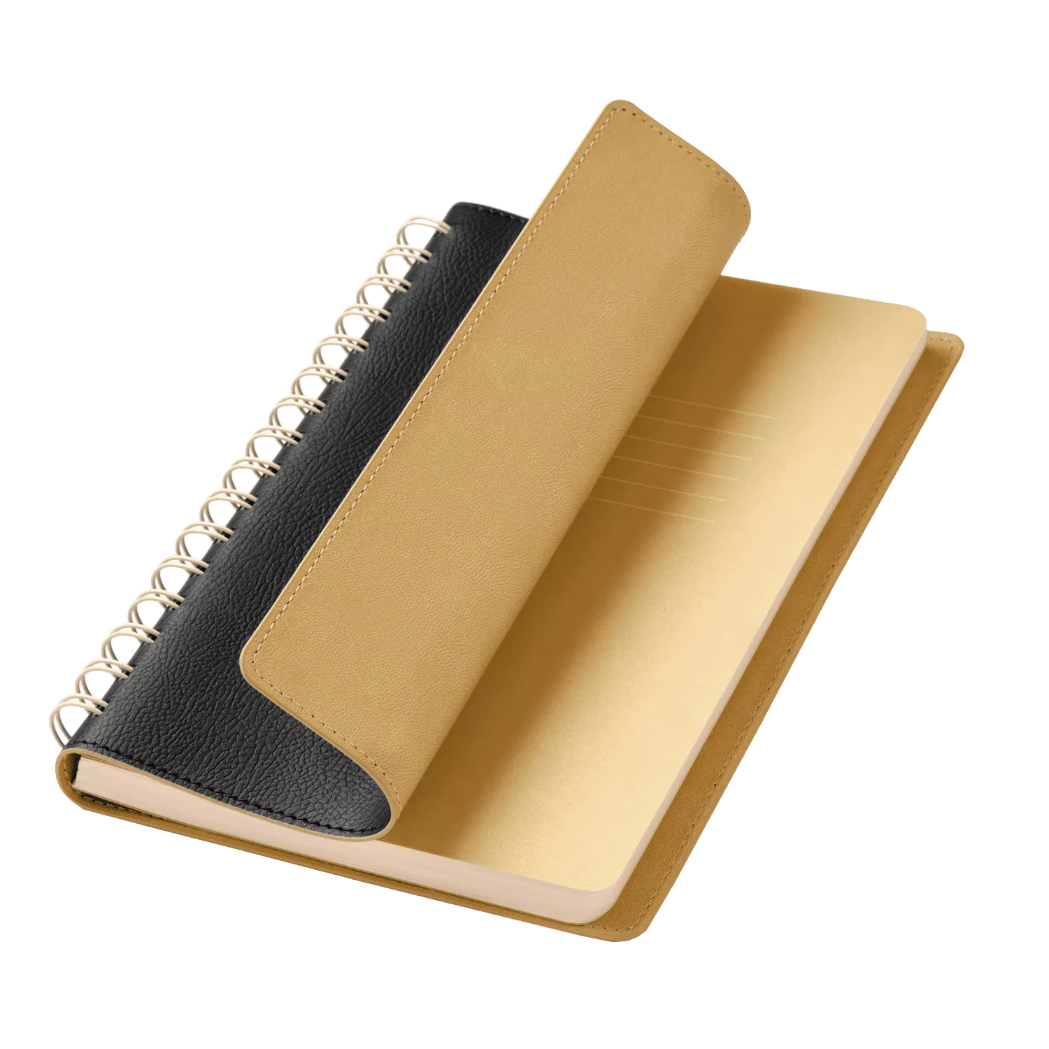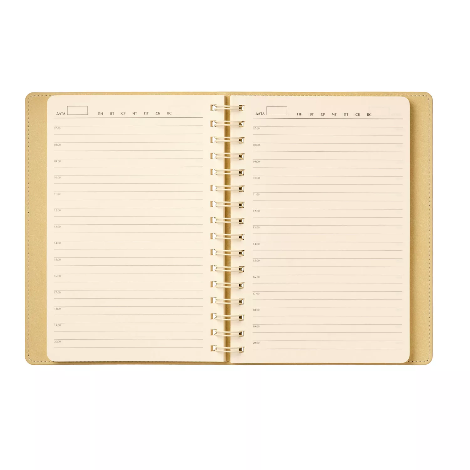 Внутренний блок с кремовыми страницами и срезом гармонично сочетается с нежным оттенком форзаца и нахзаца, повторяющим цвет внутреннего материала обложки. Надежная полускрытая пружина обеспечивает удобство использования и долговечность.