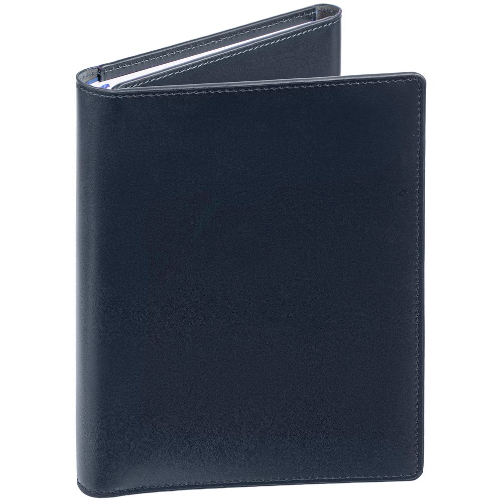 Ежедневник со съемной обложкой-портфолио из натуральной кожи, с капталом, репсовым ляссе и окрашенным срезом обложки в цвет материала.