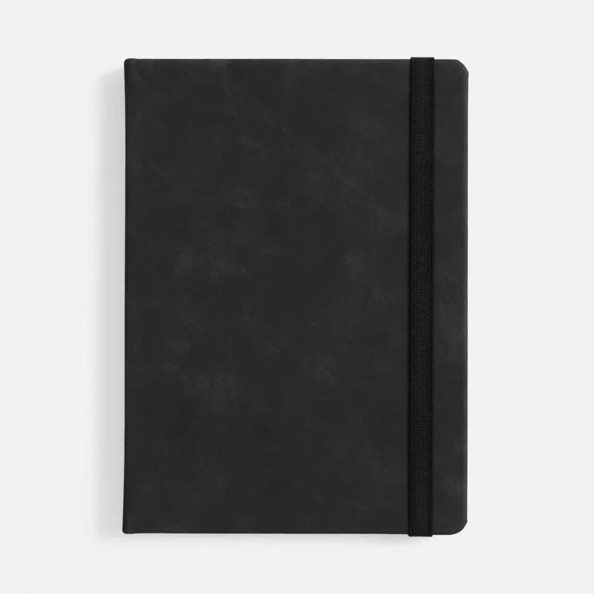 Ежедневник с твердой обложкой, выполнен из материала Nubuck Touch, черный AA, дополнен ляссе в цвет обложки.