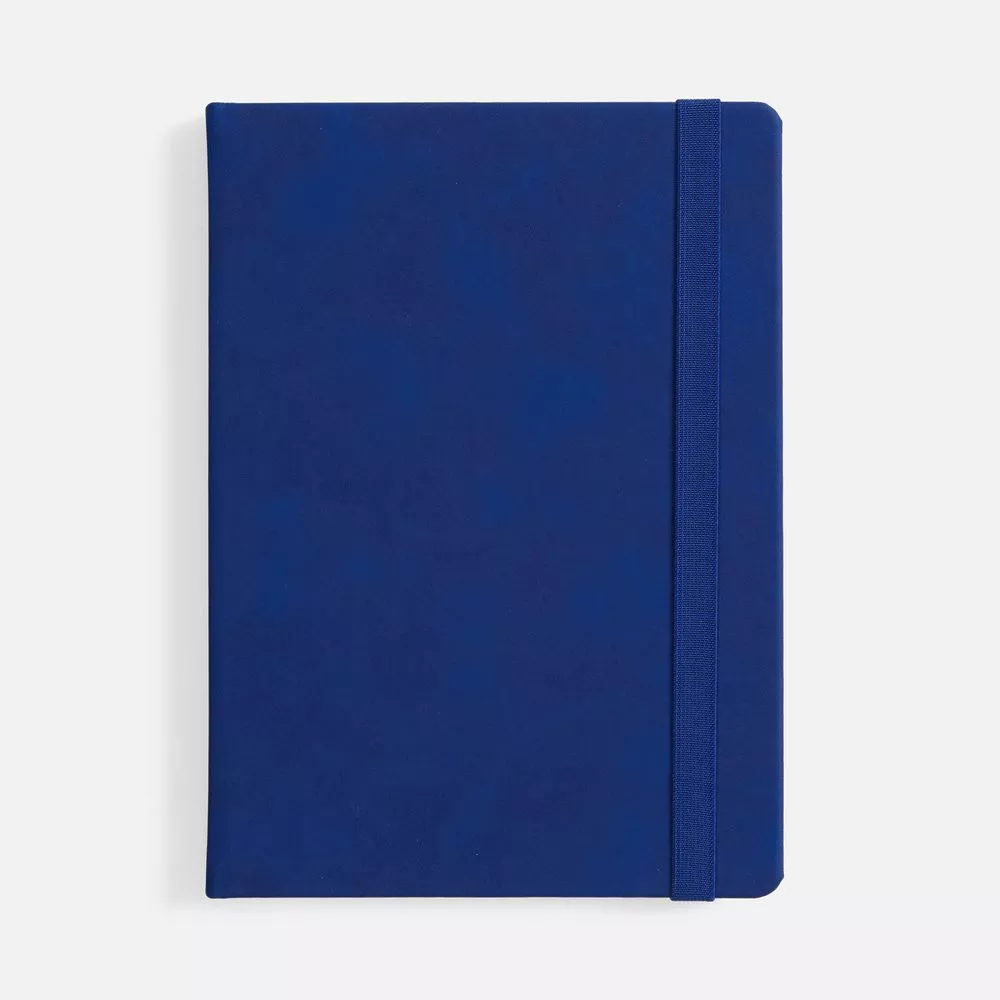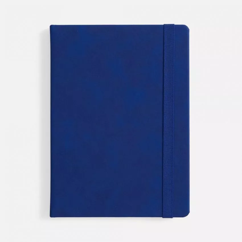 Ежедневник с твердой обложкой, выполнен из материала Nubuck Touch, синий НН, дополнен ляссе темно-синего цвета.