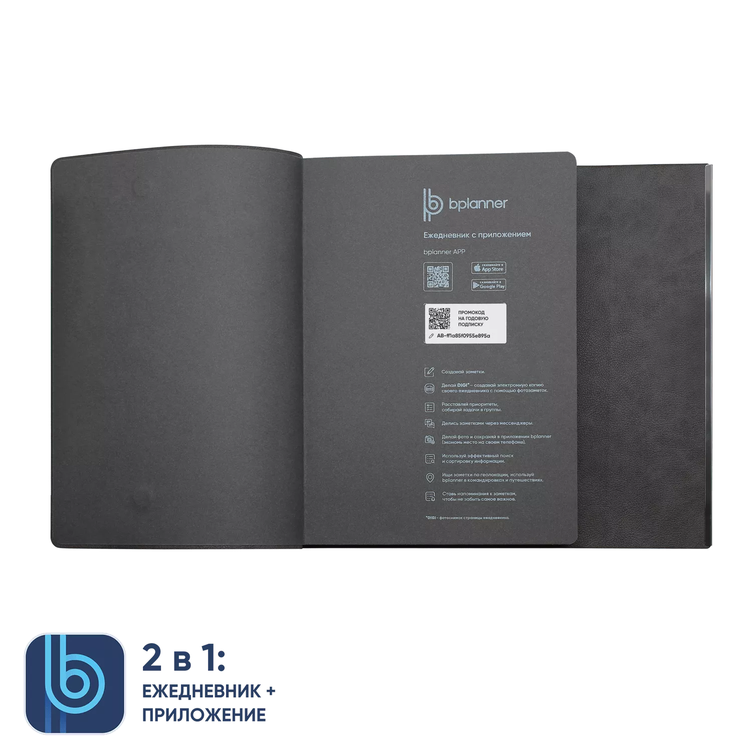 Bplanner – это первый российский ежедневник с приложением. Приложение помогает быстро оцифровать и сохранить данные из ежедневника. Ежедневник и приложение к нему производятся в России.