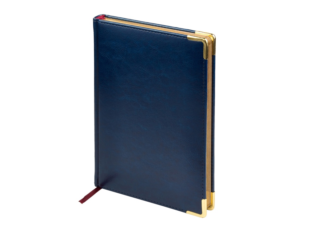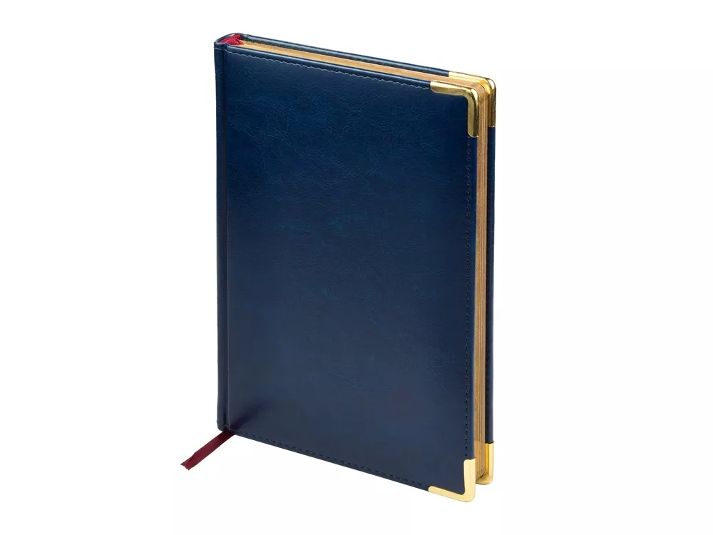 Благородство и статусность придают ежедневнику отстрочка по периметру в тон, скругленные углы, закладка-ляссе бордового цвета, золотой срез.