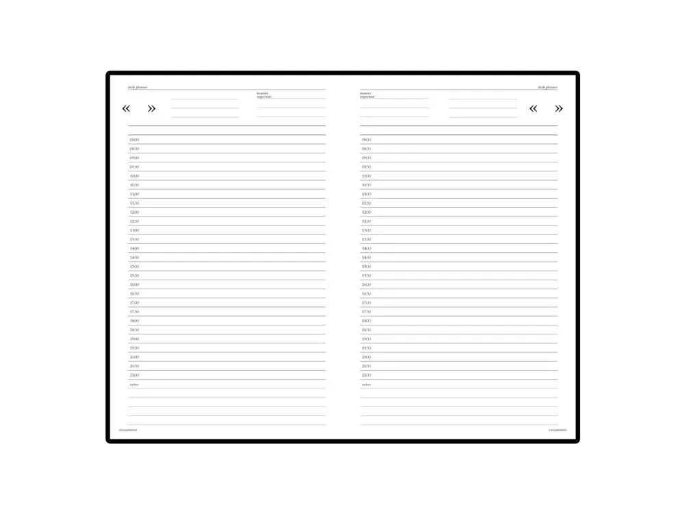 В нем есть полезная справочная информация и телефонная книга, а также 256 страницы для записи идей, мыслей и составления рабочих планов. Высококачественная бумага плотностью 55 г/кв м. Удобная разметка страниц позволяет осуществлять планирование с интервалом в полчаса. В верхней части страницы выделено поле для указания текущей даты.