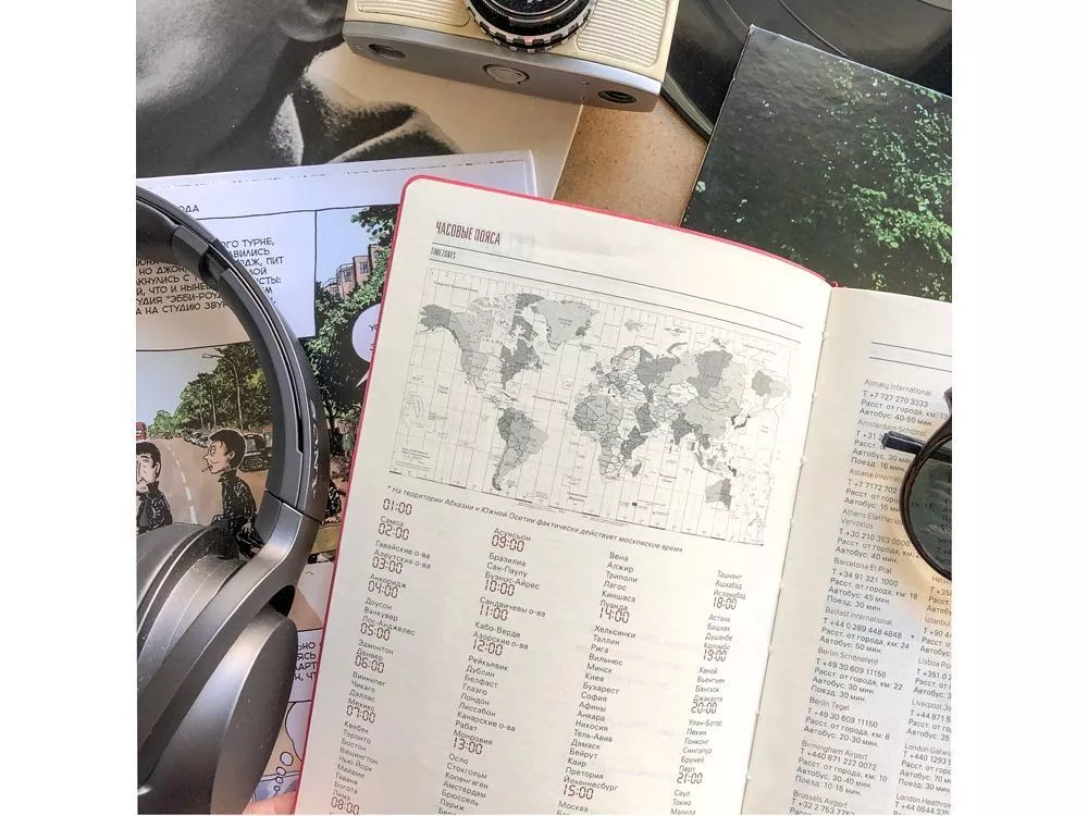 Внутри есть страница для личных данных, а также блок справочной информации (часовые пояса, аэропорты, телефонные коды, размеры одежды, автомобильные коды, римские цифры, расход калорий, формат бумаги, единицы измерения, штрихкоды, распад алкоголя в крови, города миллионники РФ и СНГ, национальные праздники, термины международной торговли, температура, скорость, давление, буквенные коды стран, энергетическая ценность продуктов, страны мира).