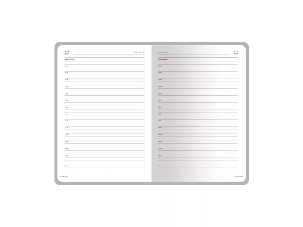 Обложка, прошитая декоративной нитью в тон, золотой срез, скругленные углы блока, бордовое ляссе – традиционные характеристики ежедневников, подчеркивающие статус его владельца. Ежедневник формата A5 имеет блок, изготовленный из белой бумаги, плотностью 70 г/кв.м и содержит 272 страницы, 19 из которых – телефонная книга, 14-справочная информация.