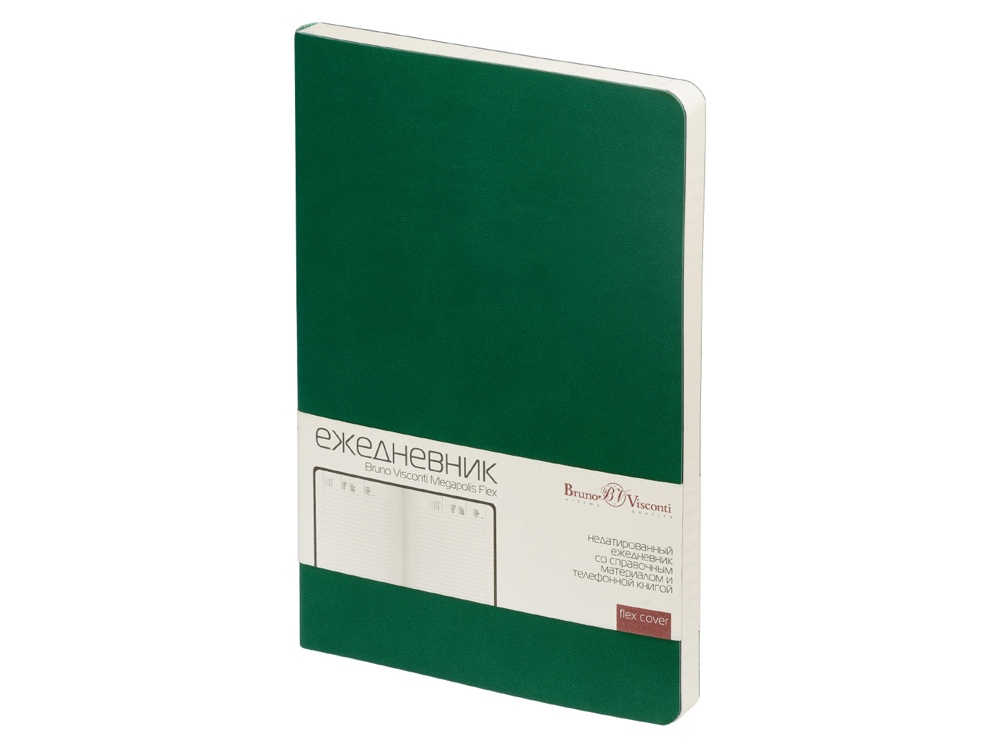 В ежедневнике Megapolis Flex есть полезная справочная информация и телефонная книга, а также страницы для записи идей, мыслей и составления рабочих планов. Для изготовления страниц используется качественный бежевый офсет повышенной плотности (70 г/кв м). Блок не привязан к конкретным датам – они указываются в выделенном поле вверху страницы. Тонированная бумага не дает глазам утомиться даже при длительной работе.