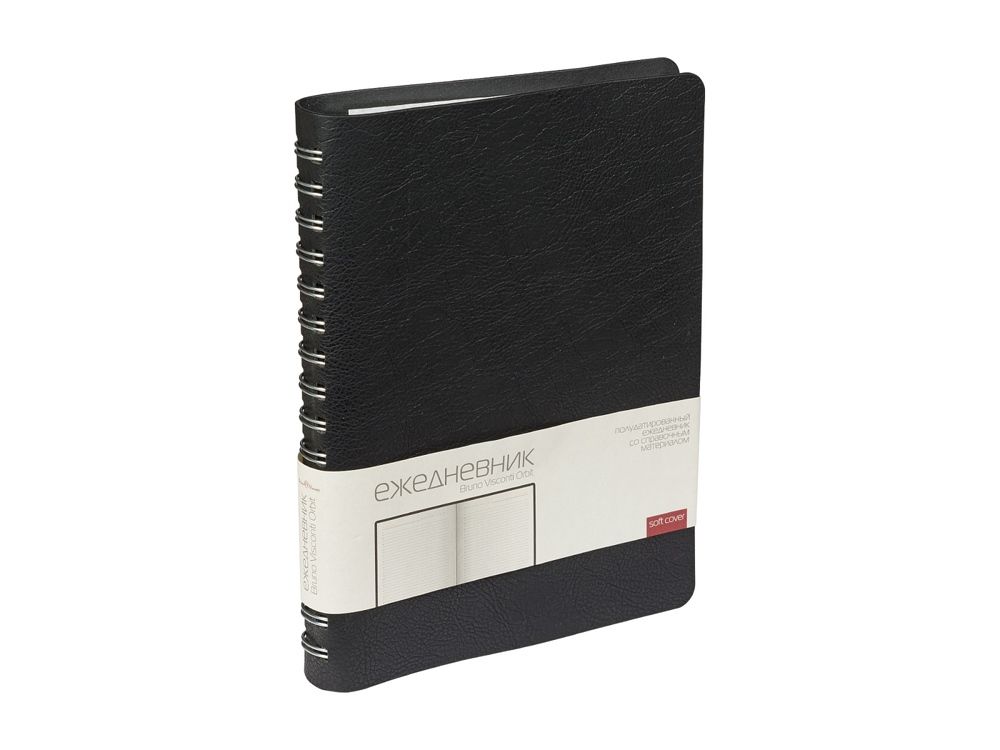 Гибкая (flex) обложка из фактурной высококачественной экокожи, скругленный угол обложки и блока, полускрытый гребень, позволяющий держать ежедневник открытым на столе и работать с комфортом, делая записи, серебряный обрез - все это визитная карточка ежедневника ORBIT от Bruno Visconti.