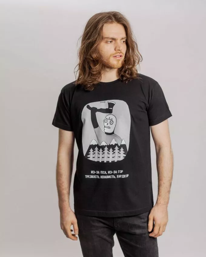 В самые трудные дни принт может выполнять роль знака «Не подходи, убьет!» и спасти множество невинных жизней.Модель без боковых швов, стиль классический, унисекс.