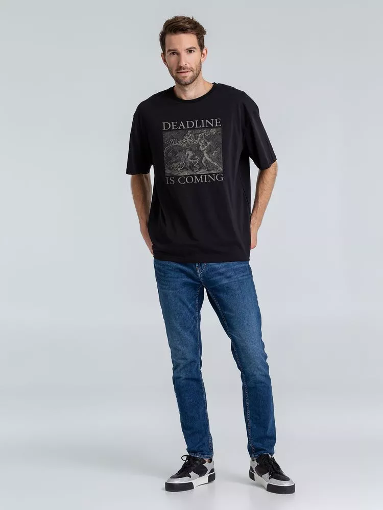 Сюжет картины повествует о шествии ведьмы по мрачному и полному опасностей подземному царству. Существует множество толкований смысла гравюры: куда же движется эта странная процессия? Пожалуй, порой именно таким паникующему прокрастинатору представляется надвигающийся дедлайн — бессмысленный и беспощадный.Футболка унисекс со спущенным плечом и круглым вырезом, отделанным резинкой.