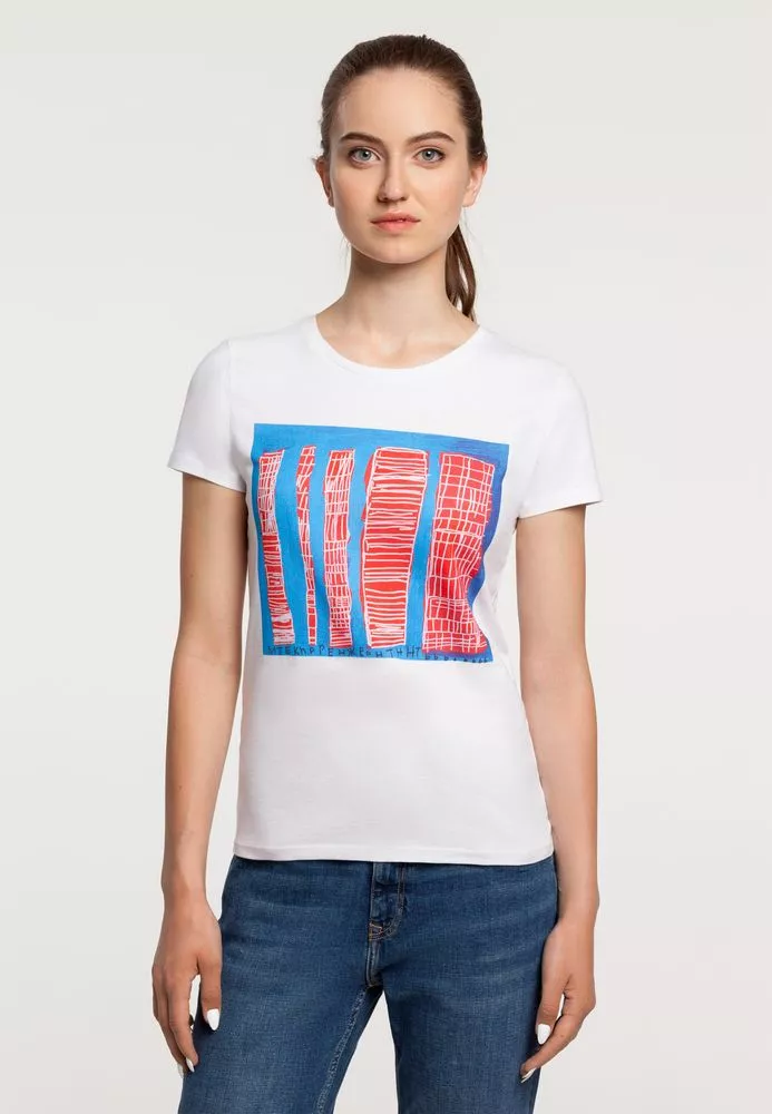 Кроеная футболка приталенного силуэта с круглым вырезом.