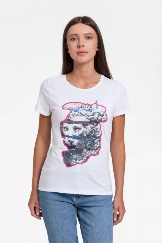 «Смотри вглубь», ведь все вокруг удивительно многомерно.Кроеная футболка приталенного силуэта с круглым воротом.
