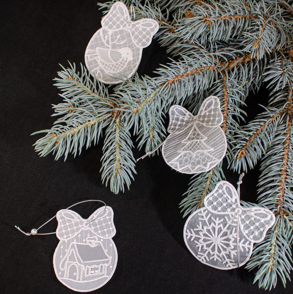 Набор состоит из 4 подвесок зимней тематики, упакованных в картонную подарочную упаковку с лентой.