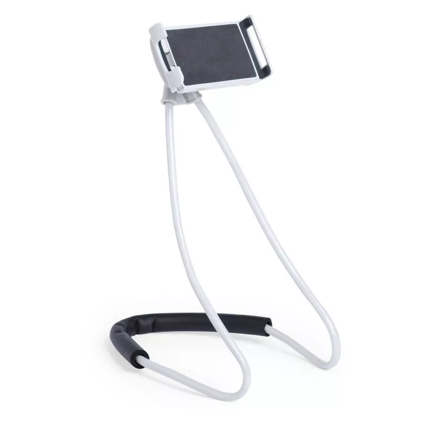 Универсальный держатель для мобильных устройств. Раздвижной захват подходит для устройств размером от 12,3 до 19,5 см. Гибкая конструкция позволяет задать нужную форму, использовать аксессуар как держатель телефона в удобном положении и как настольную подставку. Мягкая нескользящая вставка снижает нагрузку на шею.
