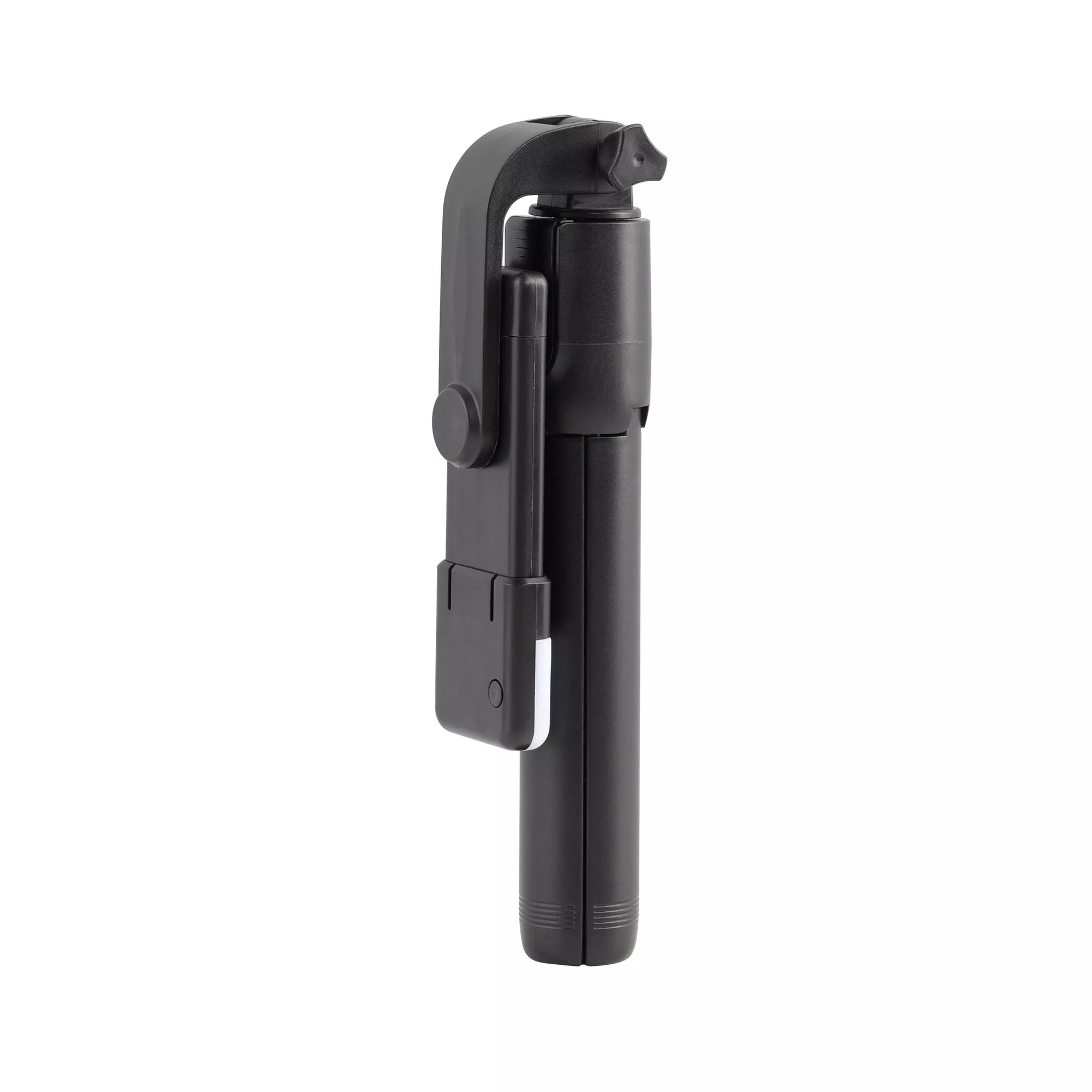 Складной трипод-трансформер с пультом дистанционного управления и съёмной лампой-подсветкой (2 режима яркости, кнопка вкл/выкл находится непосредственно на самой лампе). Пульт соединяется со смартфоном через bluetooth на расстоянии до 10 м. Батарейка для пульта входит в комплект. Длина телескопической ручки - от 18,5 см (в сложенном состоянии) до 69 см (в раздвинутом состоянии). Зажимы для смартфона можно раздвинуть от 6 до 9,5 см, весьма плотно закрепив гаджет.