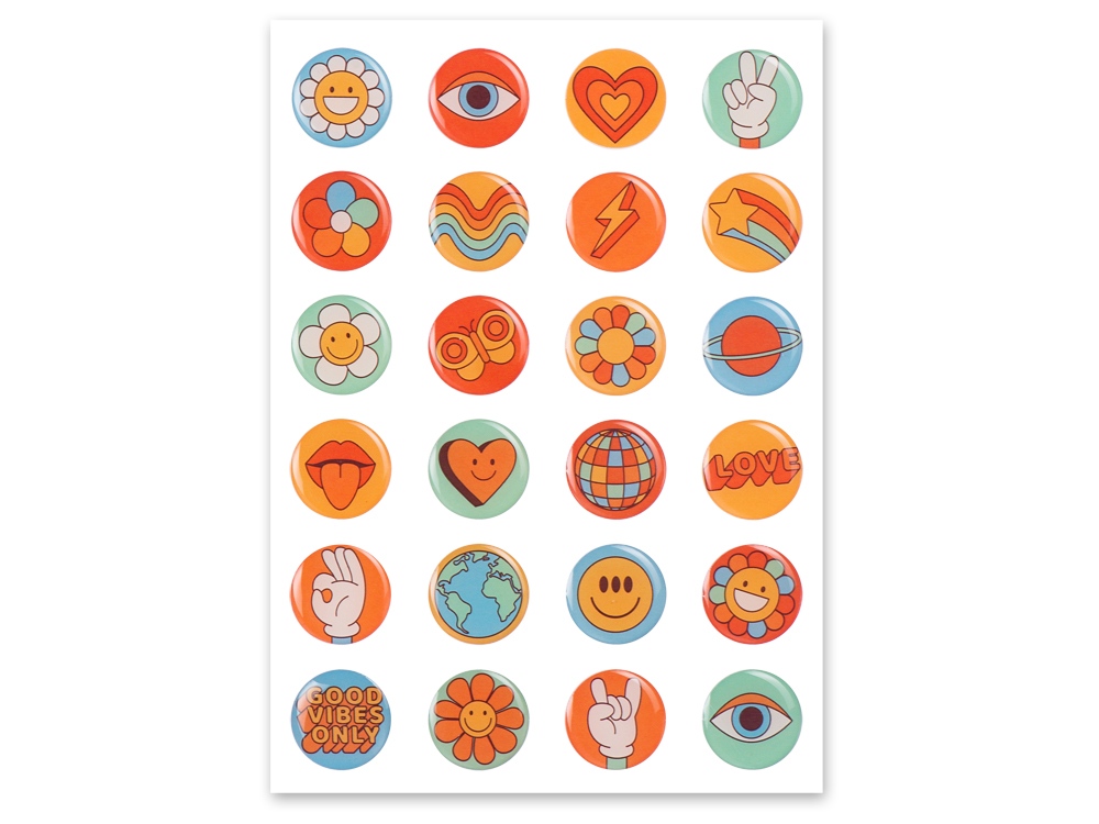 Изображение находится внутри выпуклой линзочки и выглядит объёмным. Такой эффект достигается за счёт заливки эпоксидной, или по-другому — полимерной, смолой — она наносится на изображение в жидком виде, а потом застывает, создавая объём и не давая картинке выгорать и повреждаться.