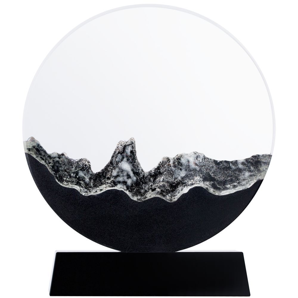 Прозрачная круглая часть и черное основание стелы изготовлены из премиального стекла К9, в основе которого лежит оптическое боросиликатное стекло. Эту марку стекла отличает низкий процент посторонних включений, высокий показатель преломления и высокая прозрачность — идеальные качества для изготовления наград премиального уровня.