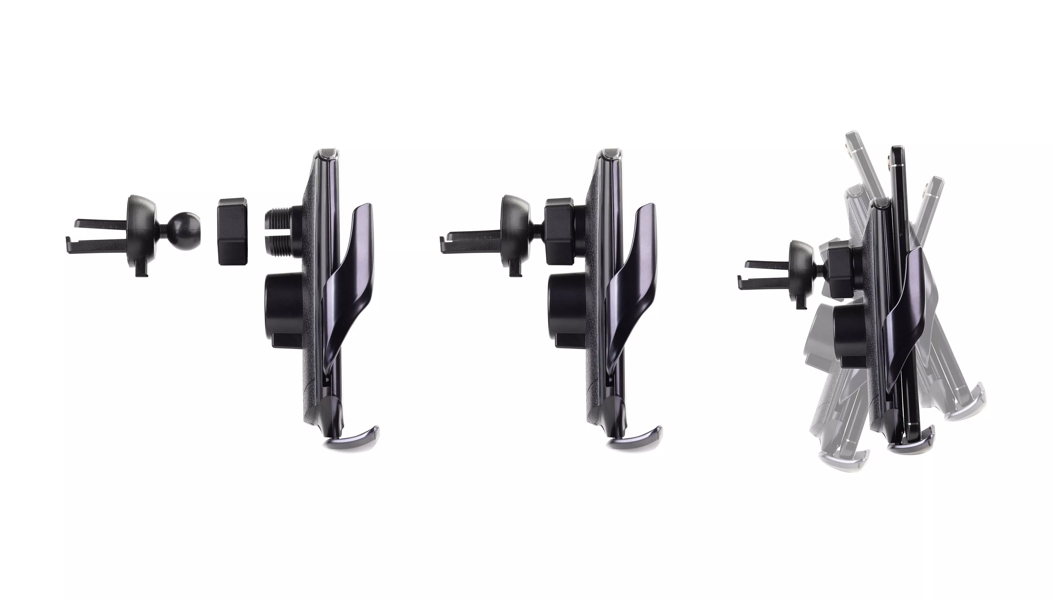 - установите смартфон на подставку, зажимы сойдутся, закрепляя смартфон на устройстве, начнётся беспроводная зарядка;